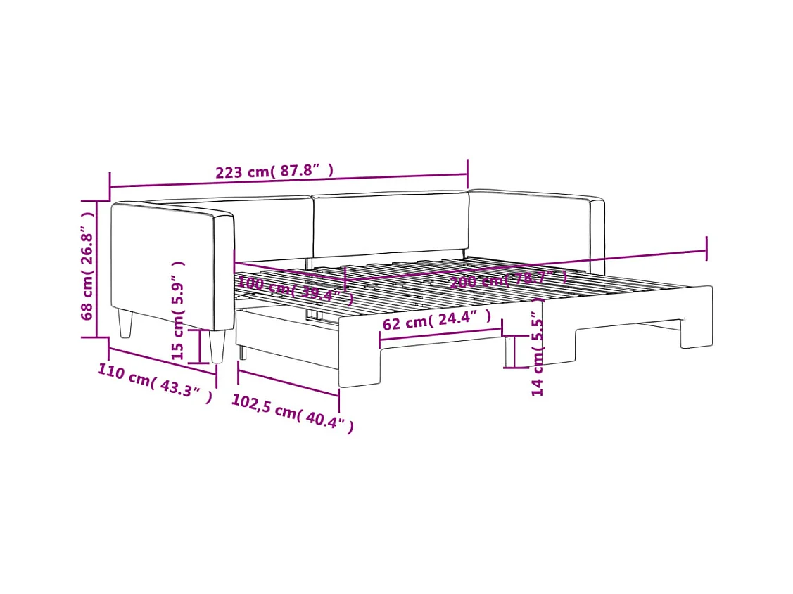 Tagesbett Ausziehbar Dunkelgrau 100x200 cm Stoff