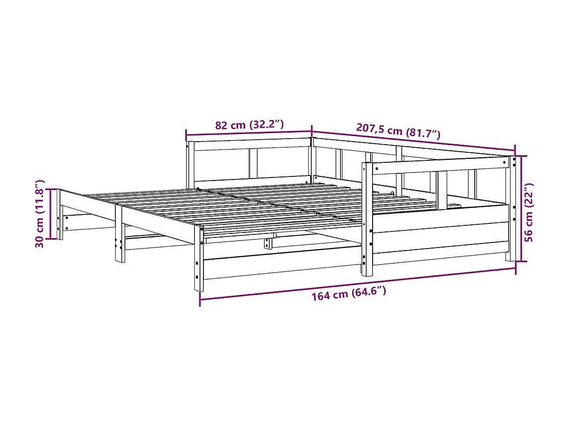 Tagesbett Ausziehbar mit Matratzen 80x200 cm Massivholz Kiefer