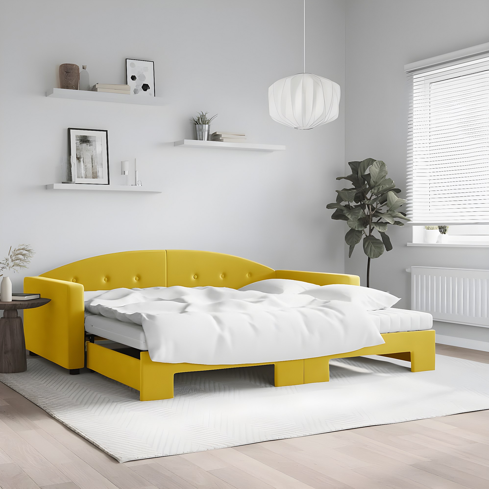 Tagesbett Ausziehbar mit Matratzen Gelb 100x200 cm Samt