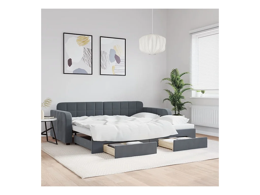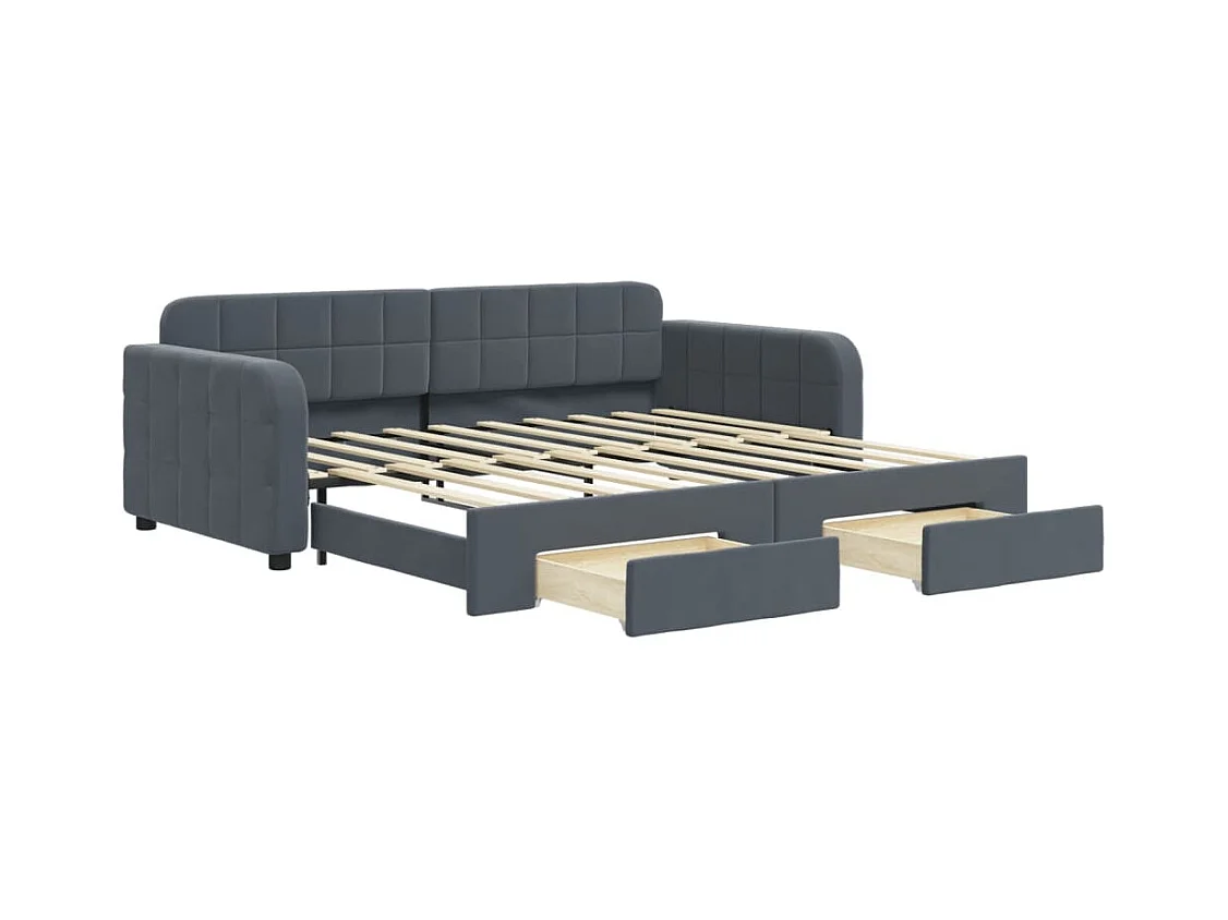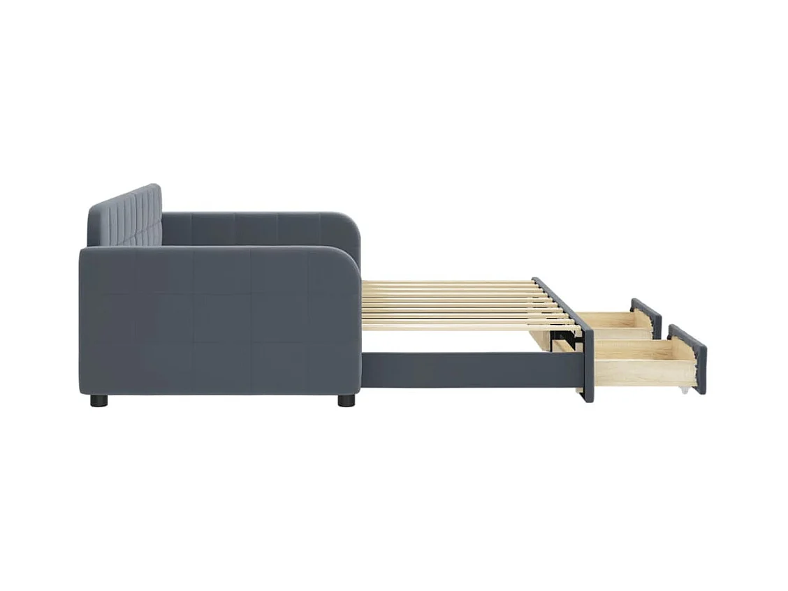 Tagesbett Ausziehbar mit Schubladen Dunkelgrau 90x190 cm Samt