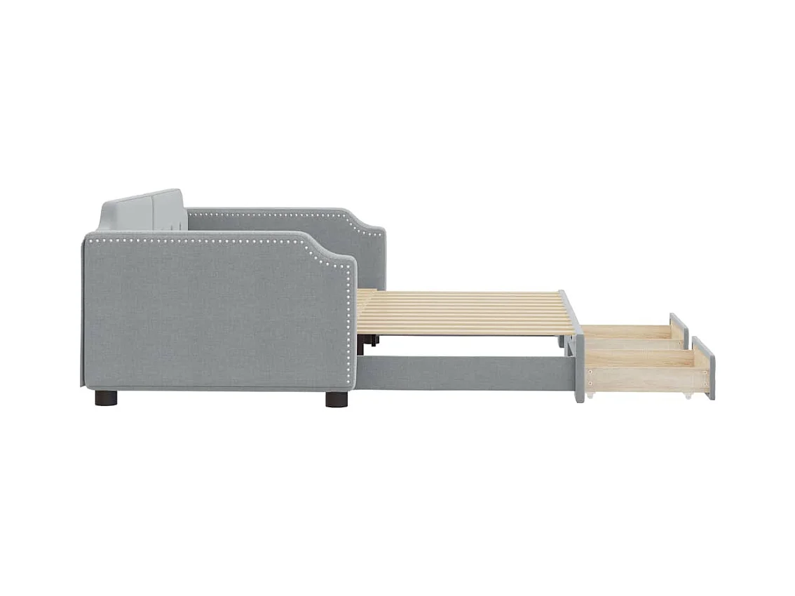 Tagesbett Ausziehbar mit Schubladen Hellgrau 100x200 cm Stoff