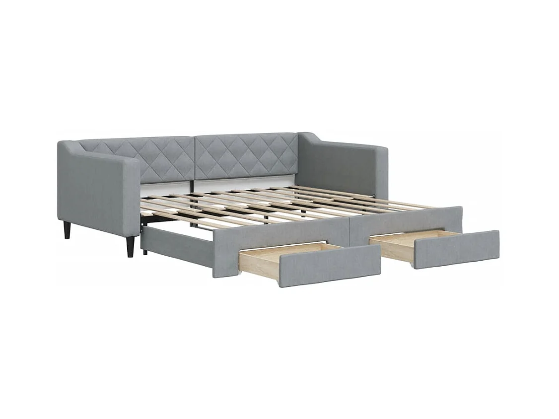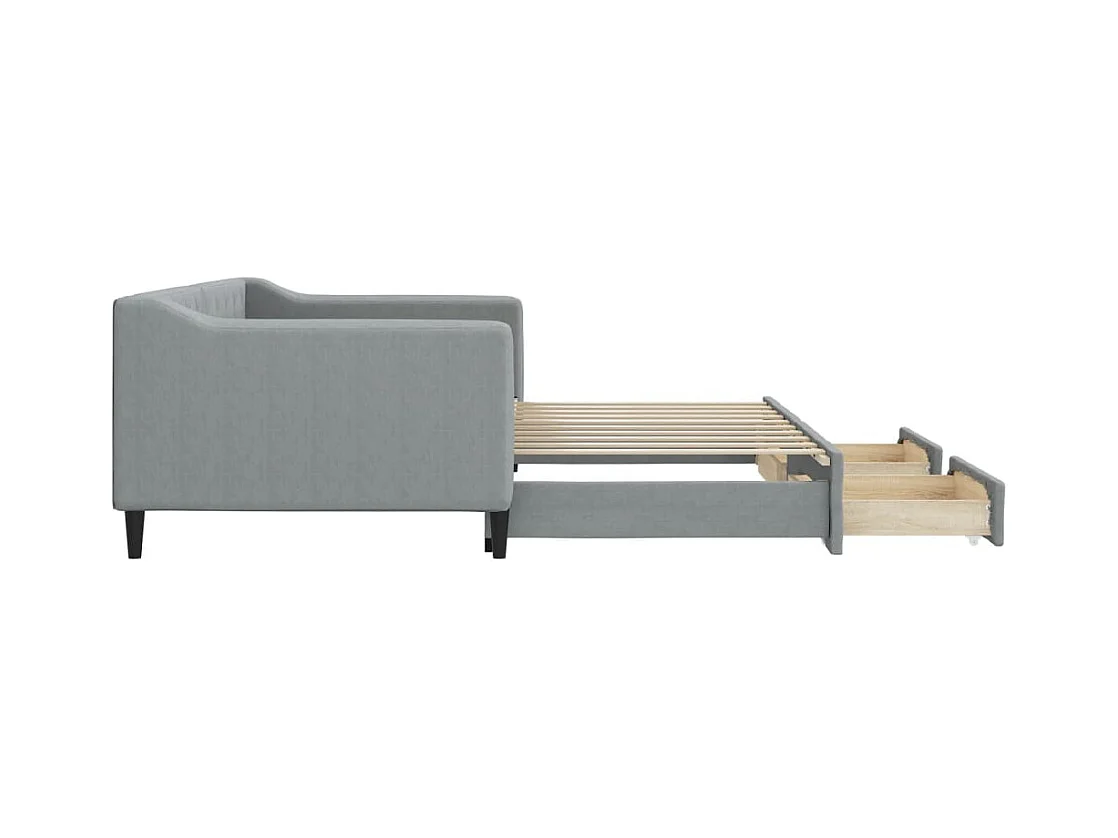 Tagesbett Ausziehbar mit Schubladen Hellgrau 90x190 cm Stoff