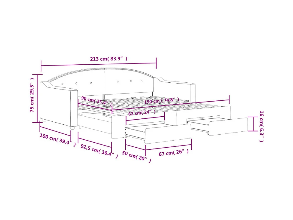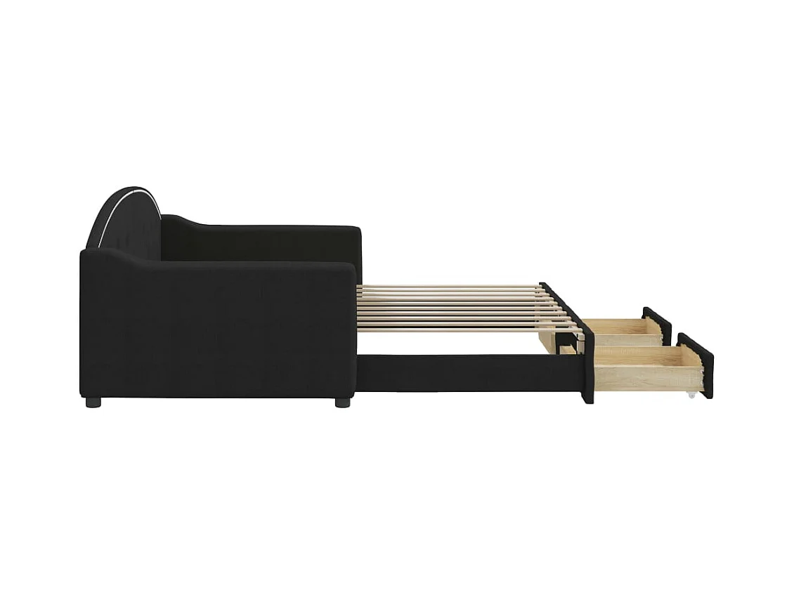 Tagesbett Ausziehbar mit Schubladen Schwarz 90x190 cm Stoff