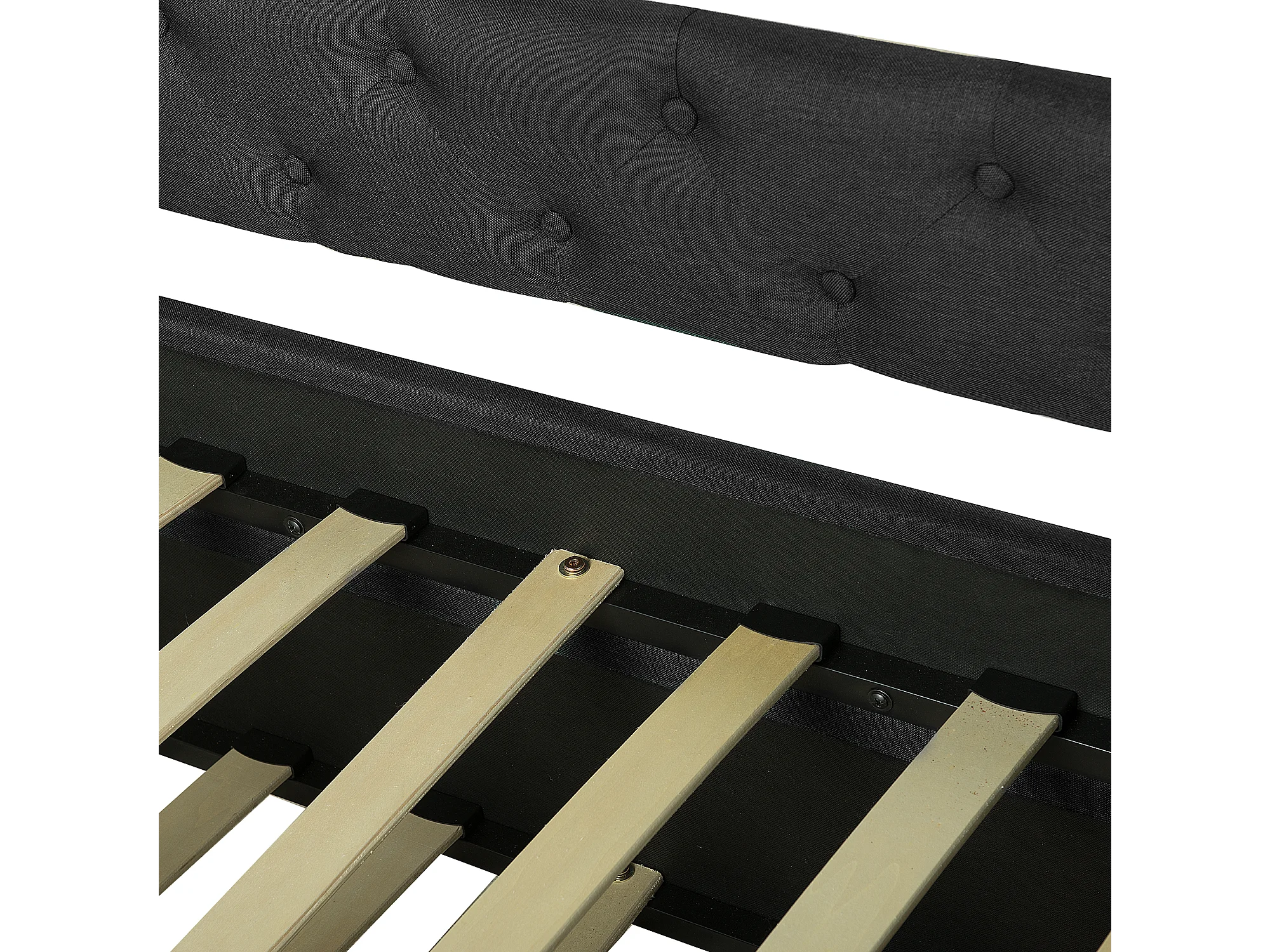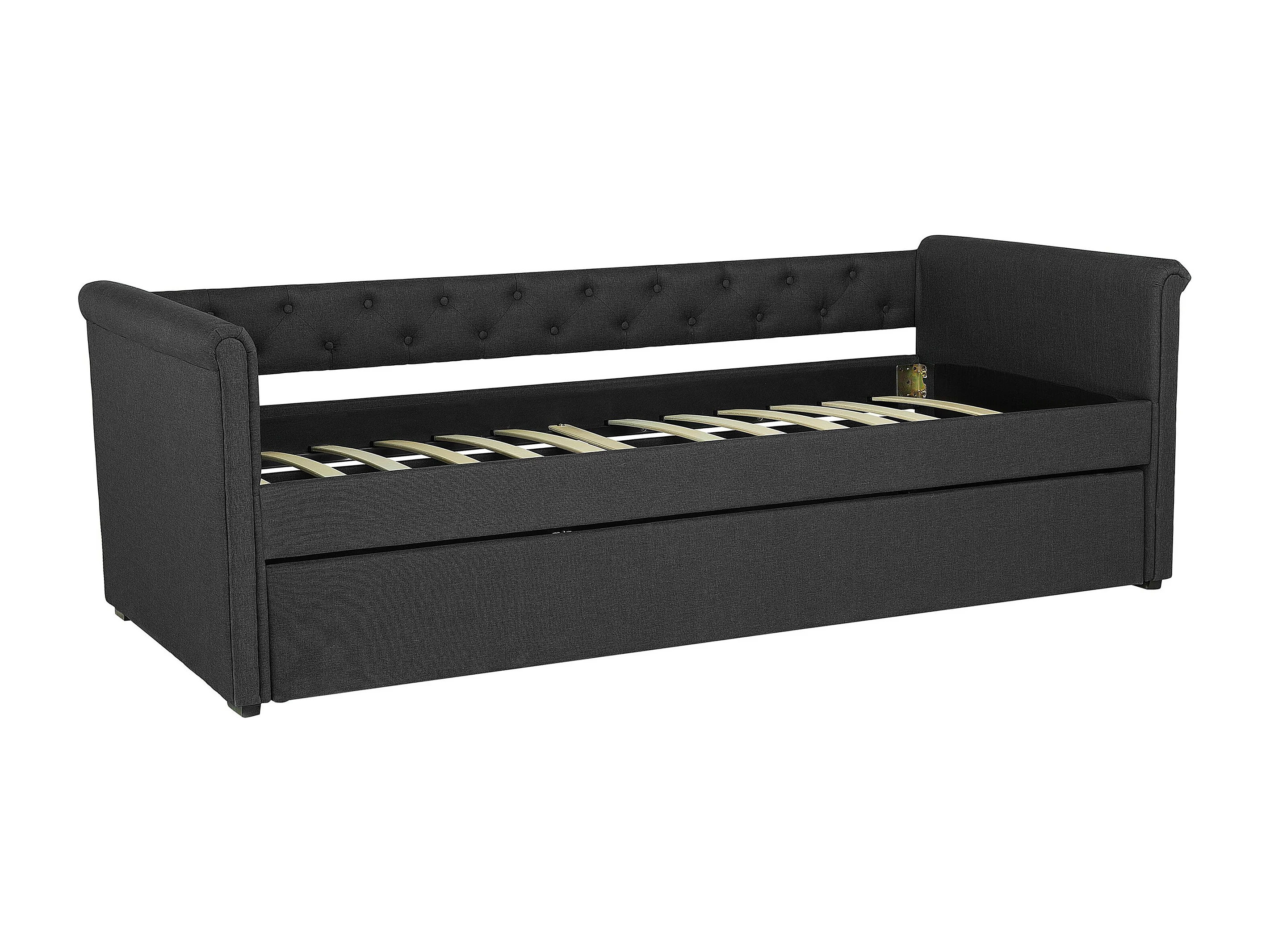 Elegantes Tandembett ausziehbar Polsterung dunkelgrau Leinenoptik Libourne