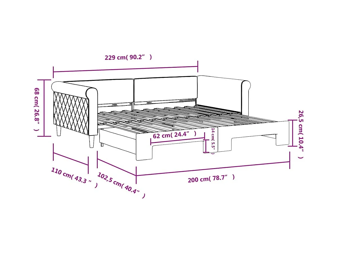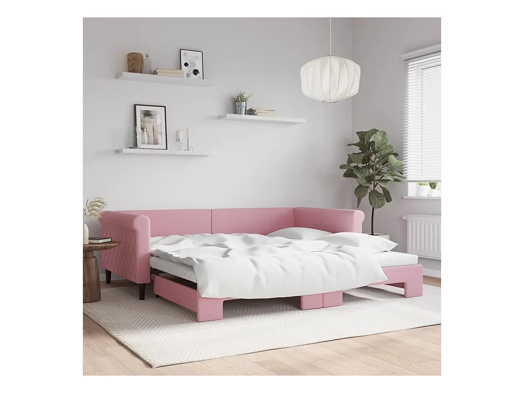 Tagesbett Ausziehbar Rosa 100x200 cm Samt