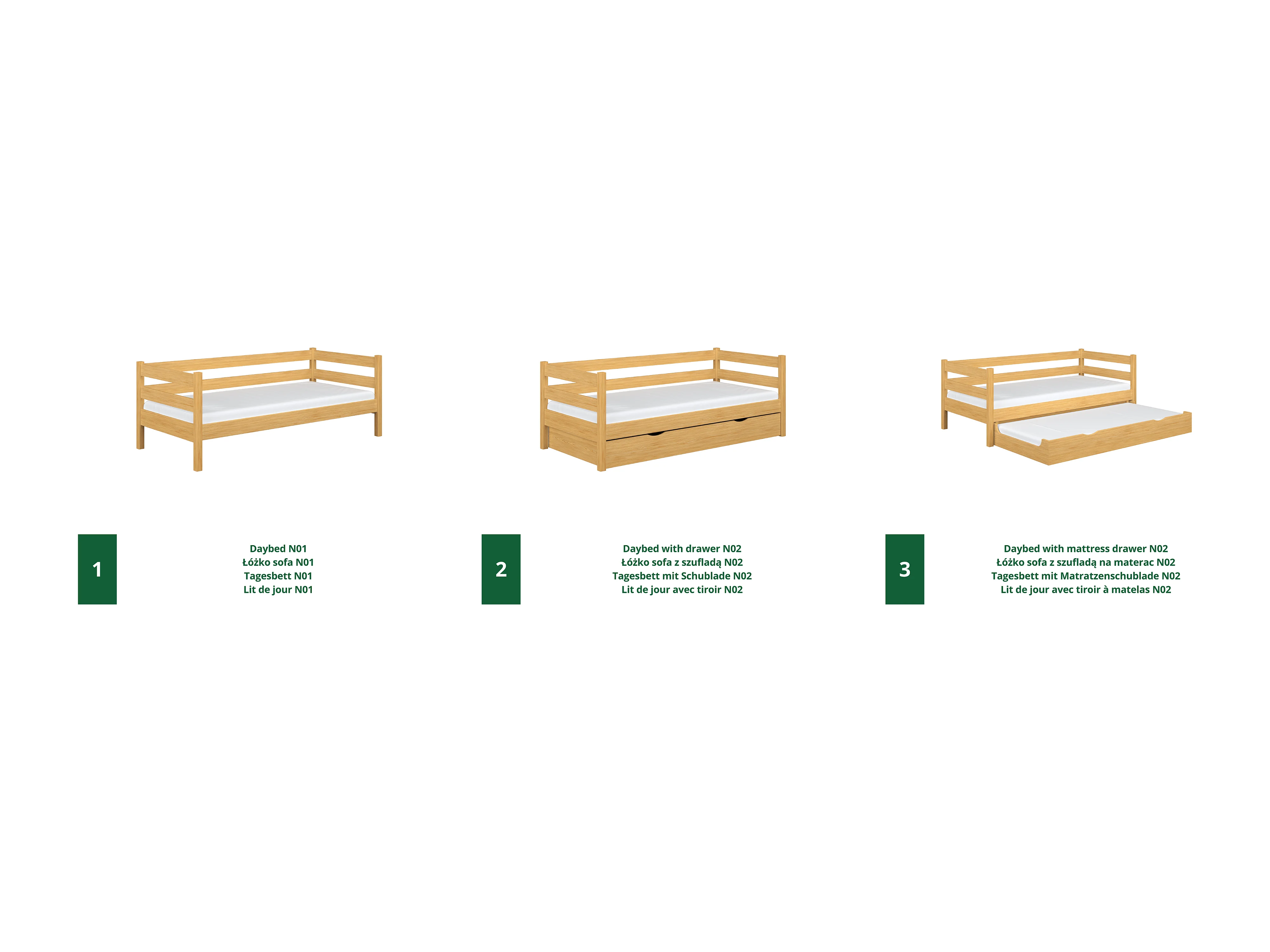 AUSZIEHBETT N01S Naturkiefer 100x190