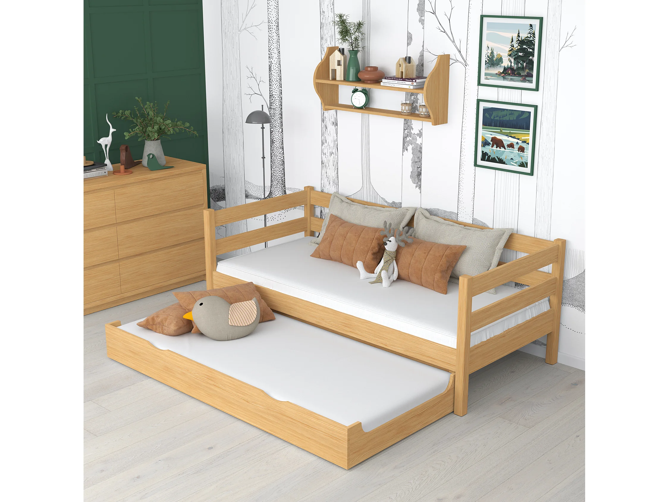 AUSZIEHBETT N01S Naturkiefer 120x180