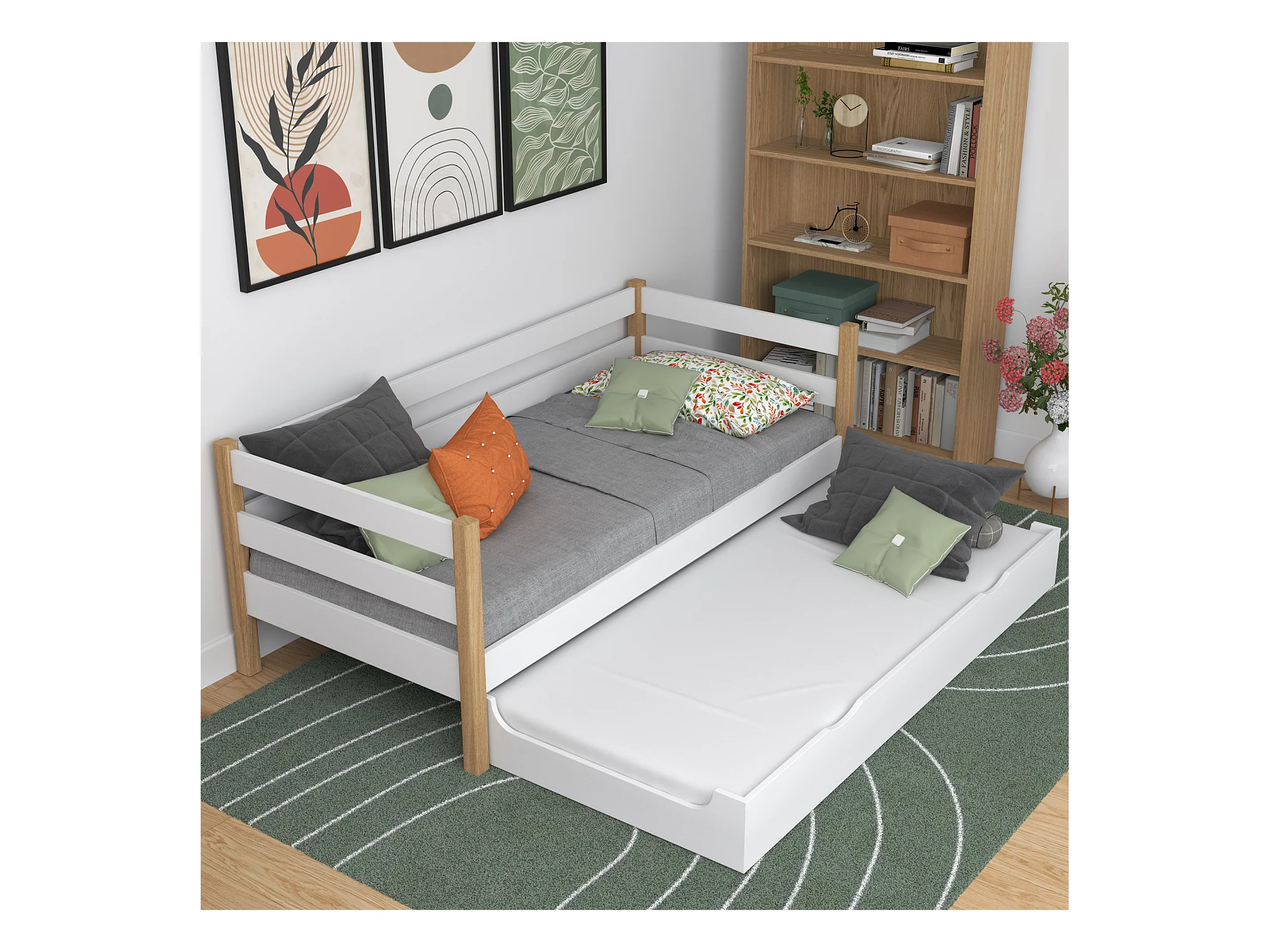 AUSZIEHBETT N01S Weiß / Eiche Natur 90x190