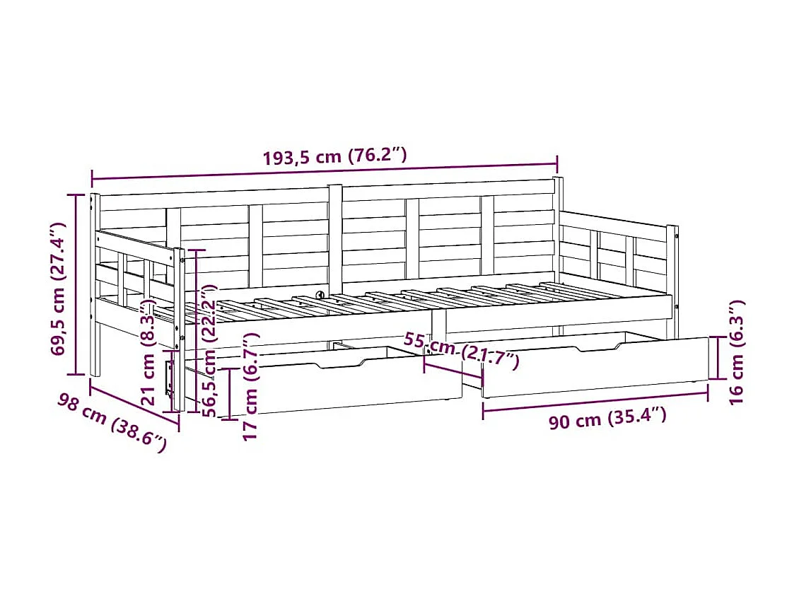 Tagesbett mit Schubladen 90x190 cm Massivholz Kiefer