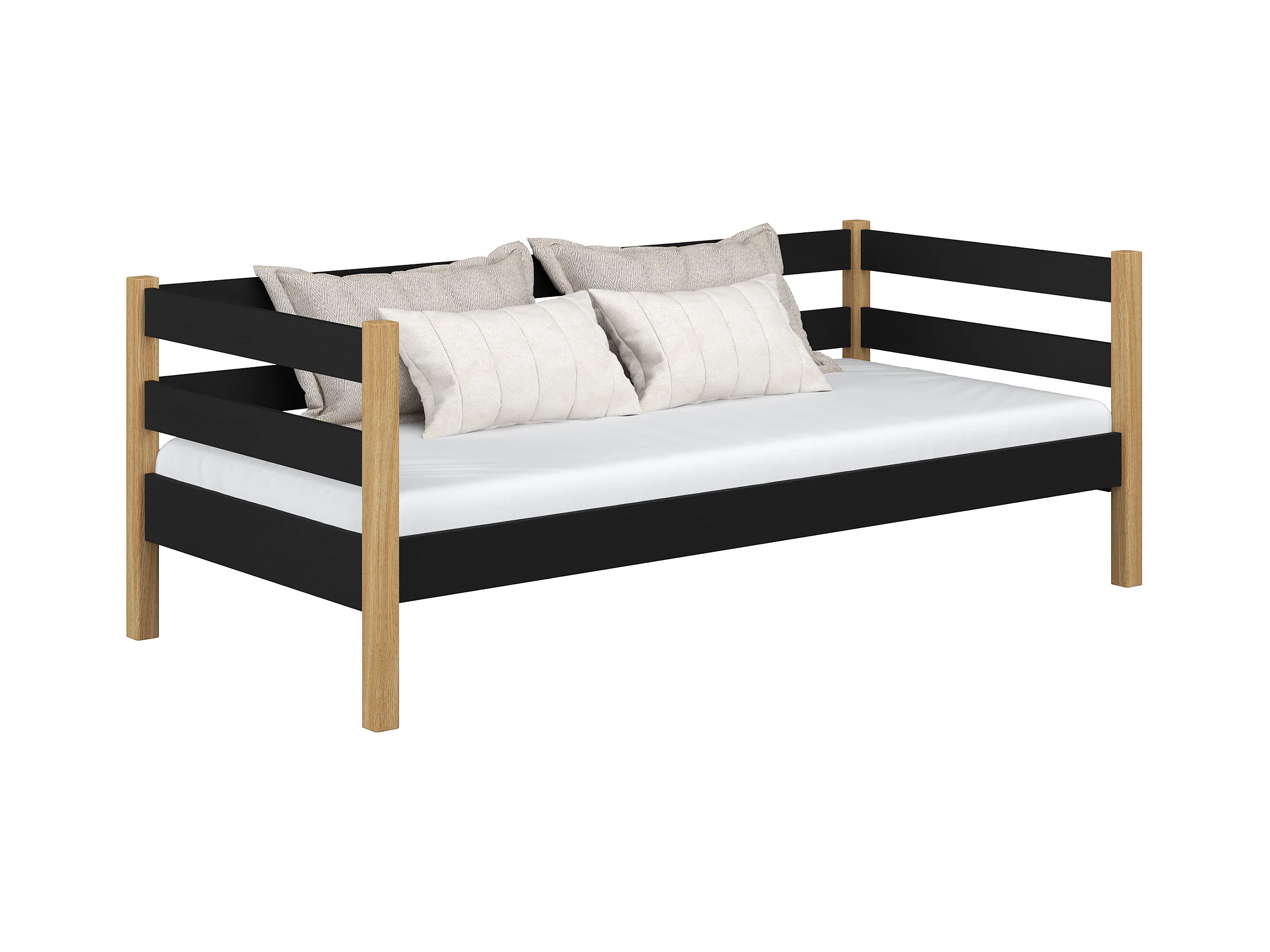TAGESBETT Schwarz / Eiche Natur 100x190