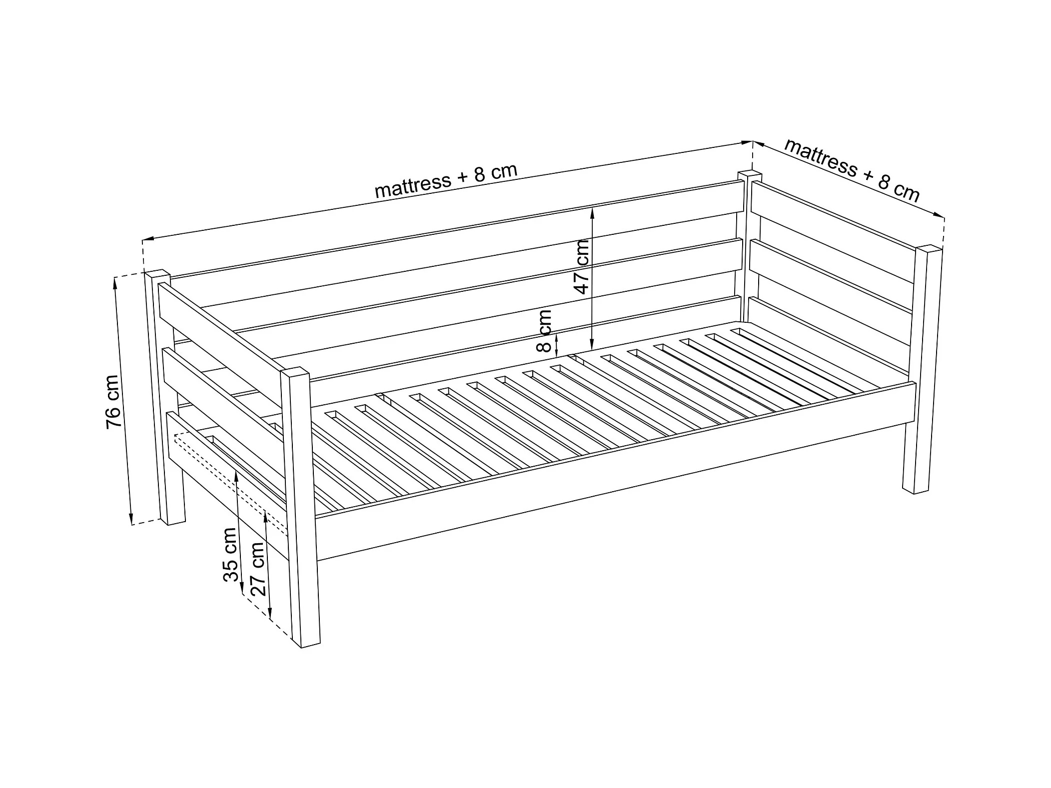 TAGESBETT Schwarz / Eiche Natur 90x190