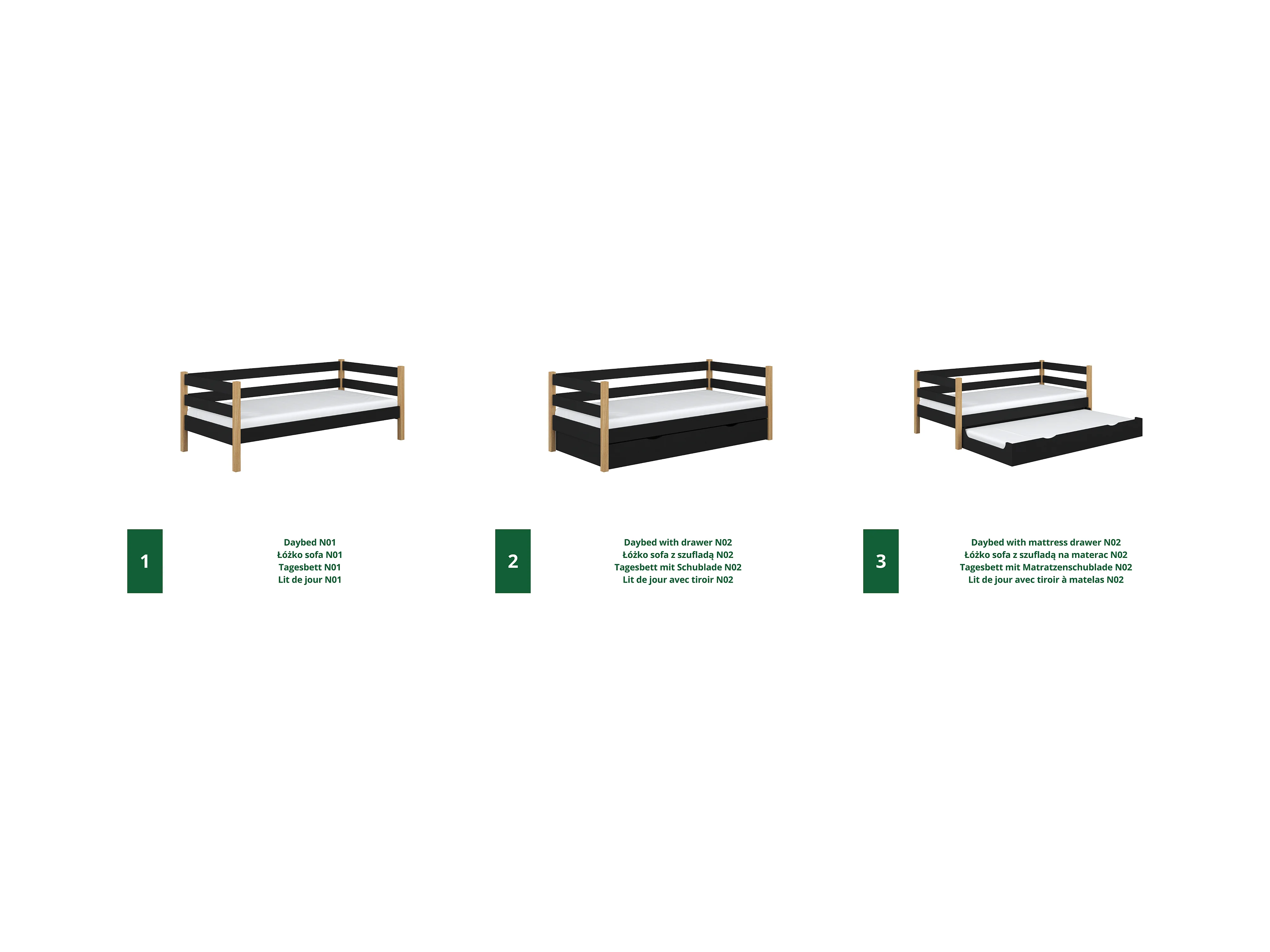 TAGESBETT Schwarz / Eiche Natur 90x200