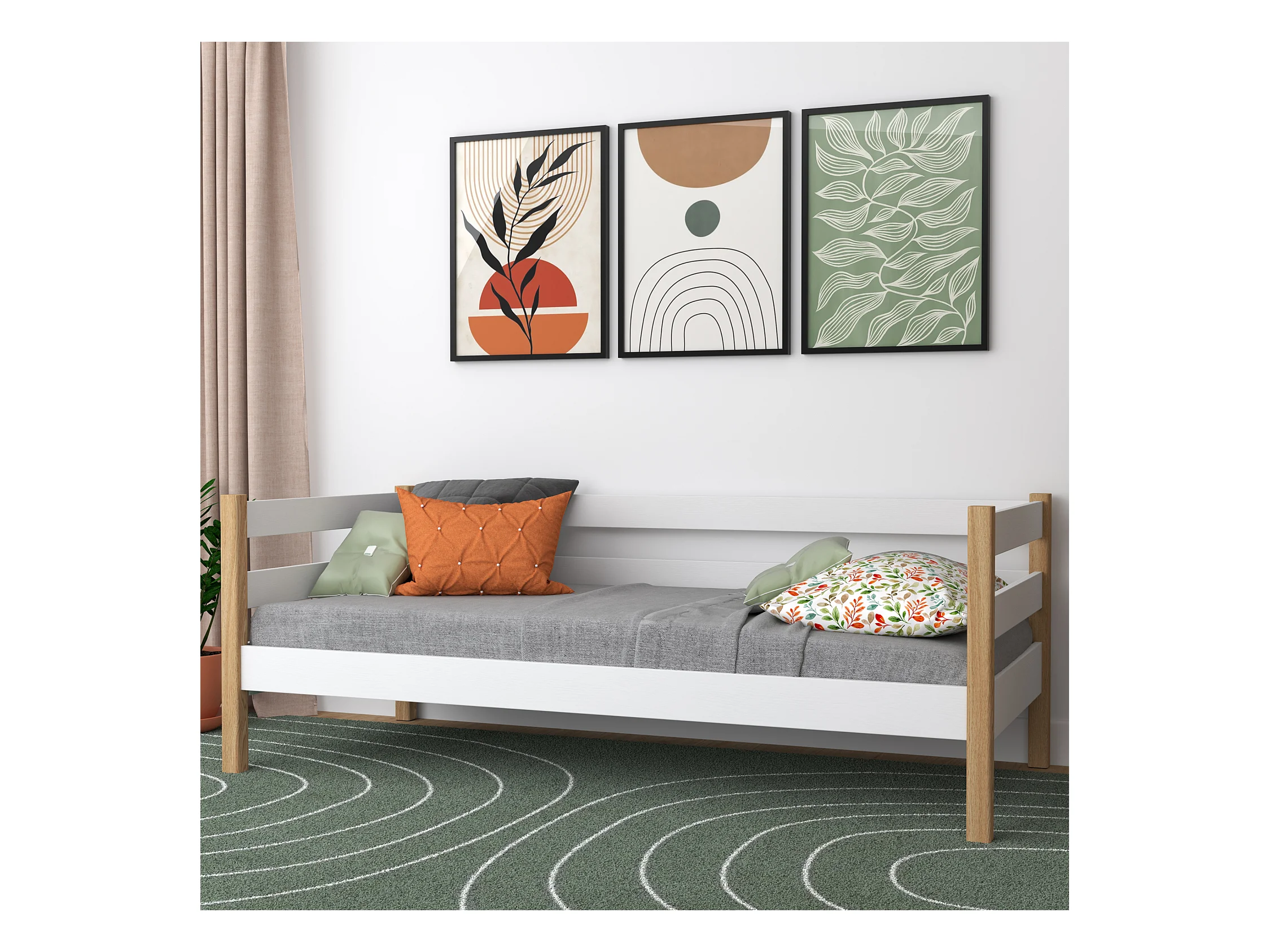 TAGESBETT Weiß / Eiche Natur 100x200