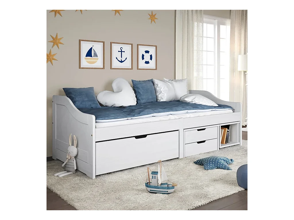 Tagesbett,Sofabett mit 3 Schubladen IRUN Weiß 90x200cm Massivholz Kiefer -gkd79372
