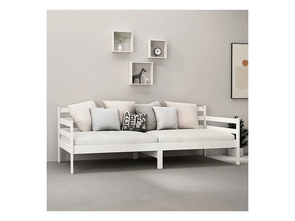 Tagesbett,Sofabett mit Matratze 90x200 cm Weiß Kiefer Massivholz -gkd63238