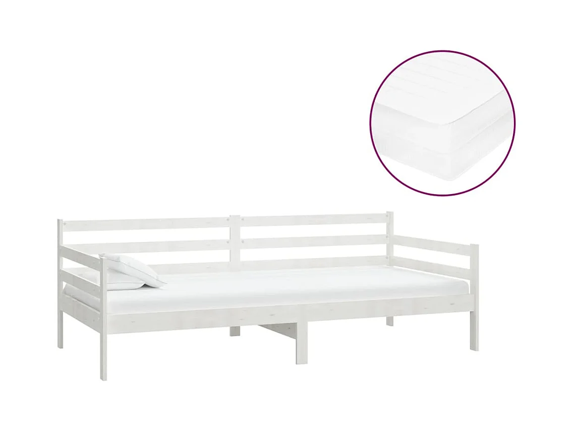 Tagesbett,Sofabett mit Matratze 90x200 cm Weiß Kiefer Massivholz -gkd71083
