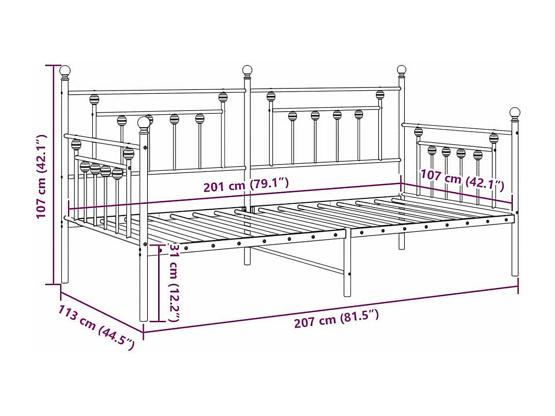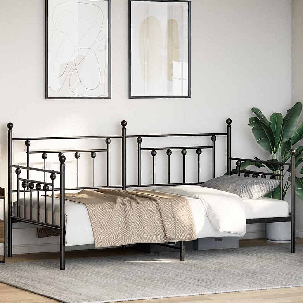 Tagesbettrahmen mit Kopfteil Schwarz 107 x 203 cm Stahl