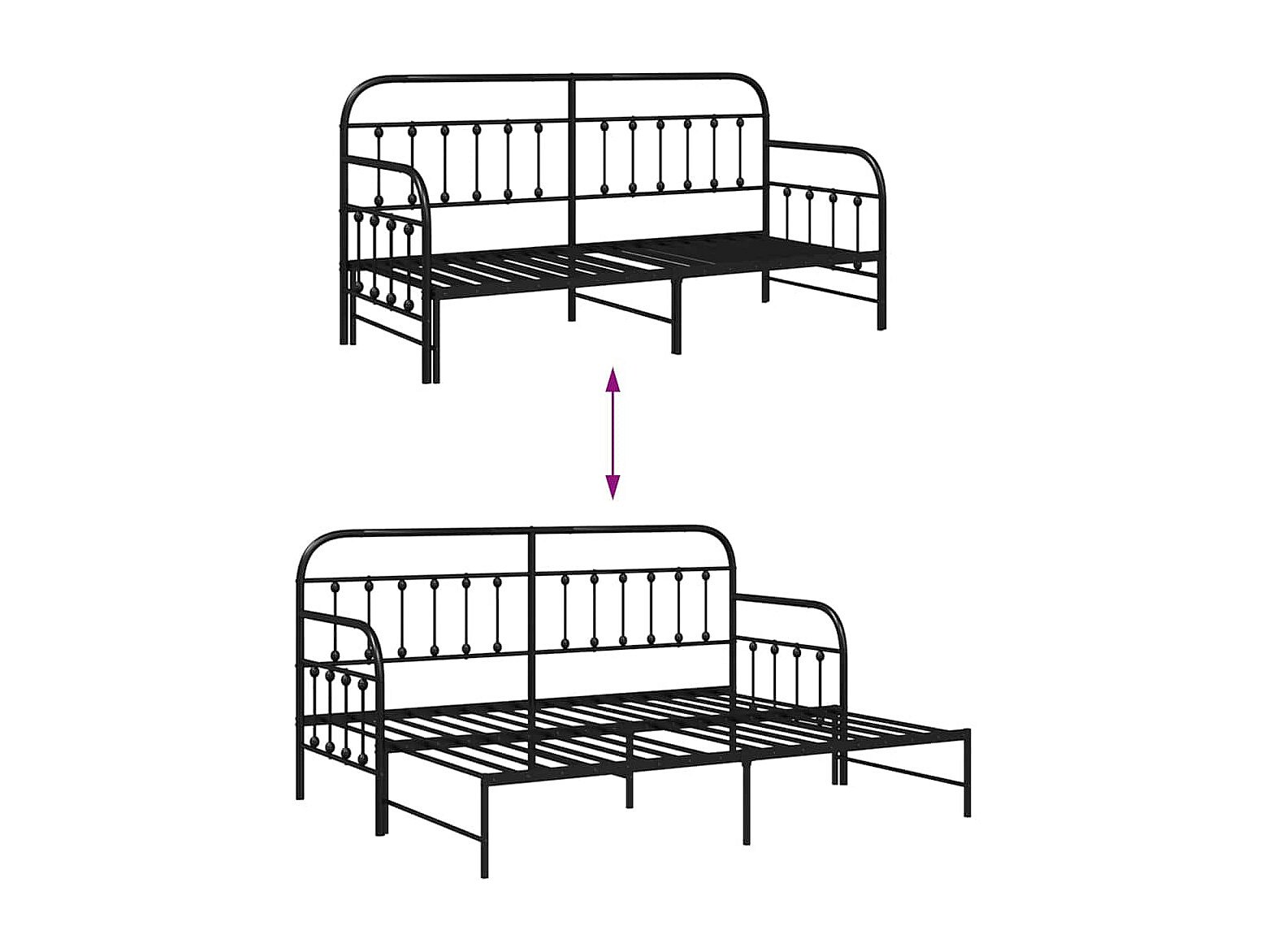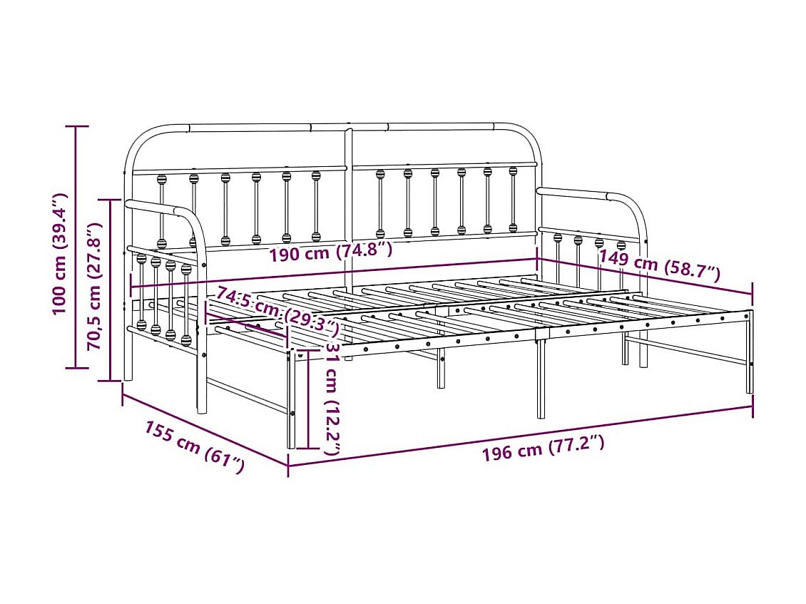 Tagesbettrahmen mit Kopfteil Schwarz 75 x 190 cm Stahl