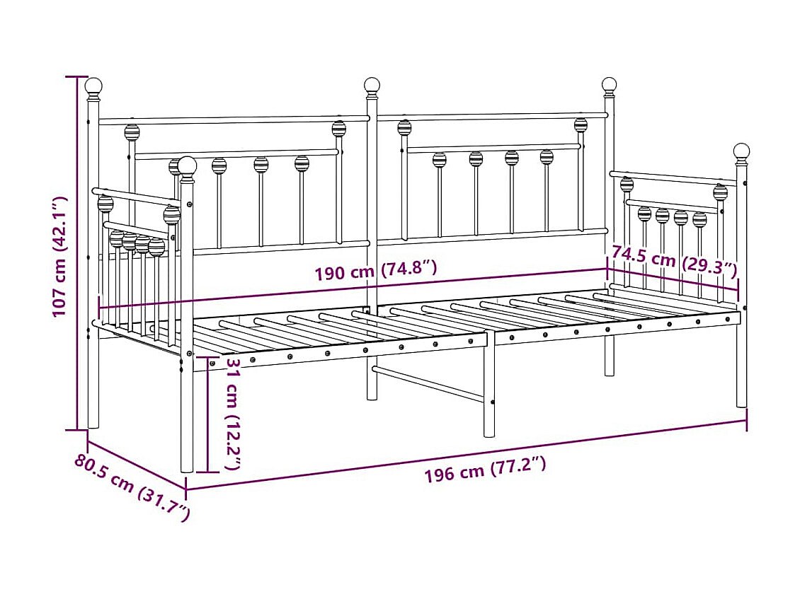 Tagesbettrahmen mit Kopfteil Schwarz 75 x 190 cm Stahl