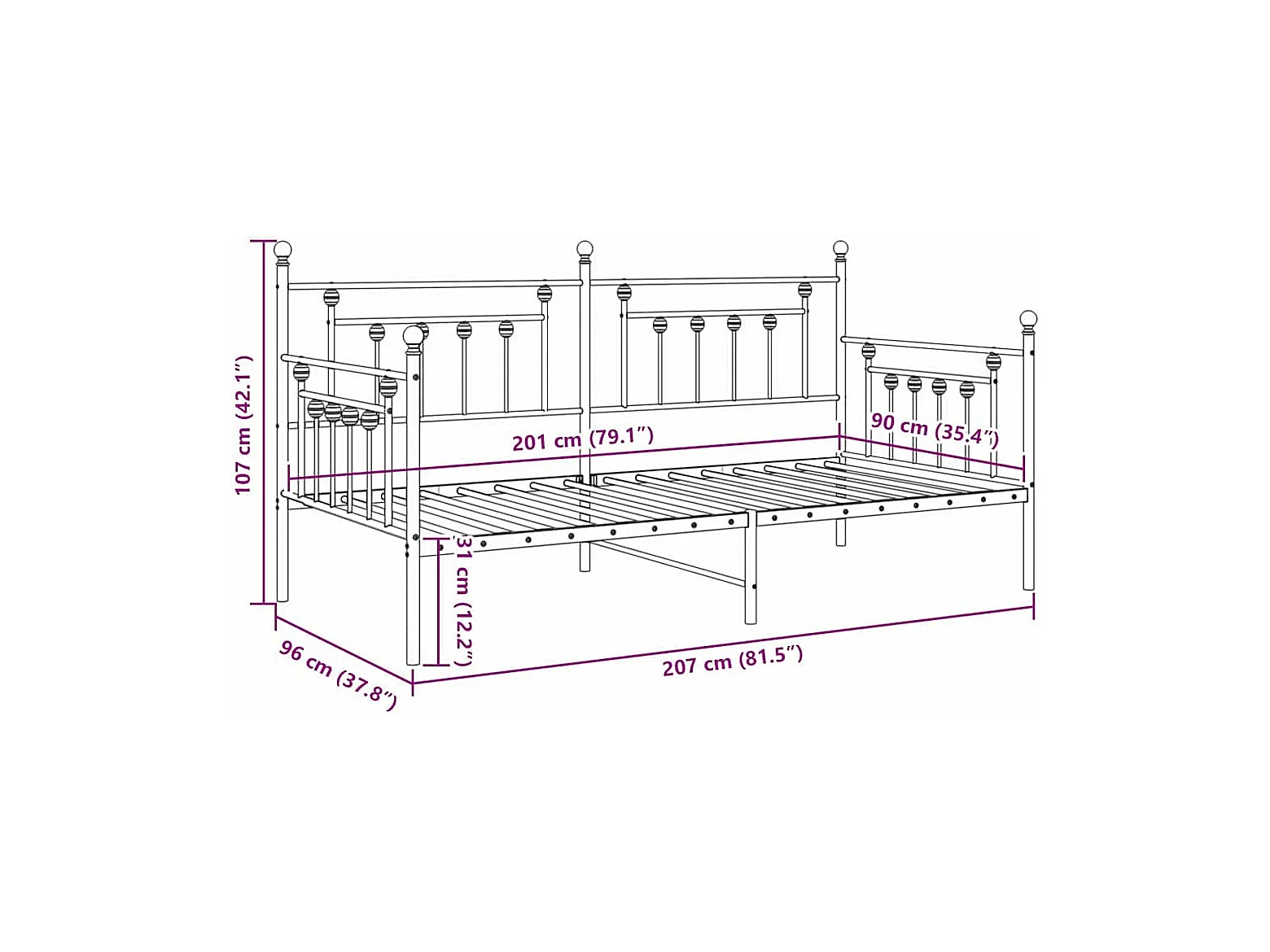 Tagesbettrahmen Schwarz 90 x 200 cm Stahl