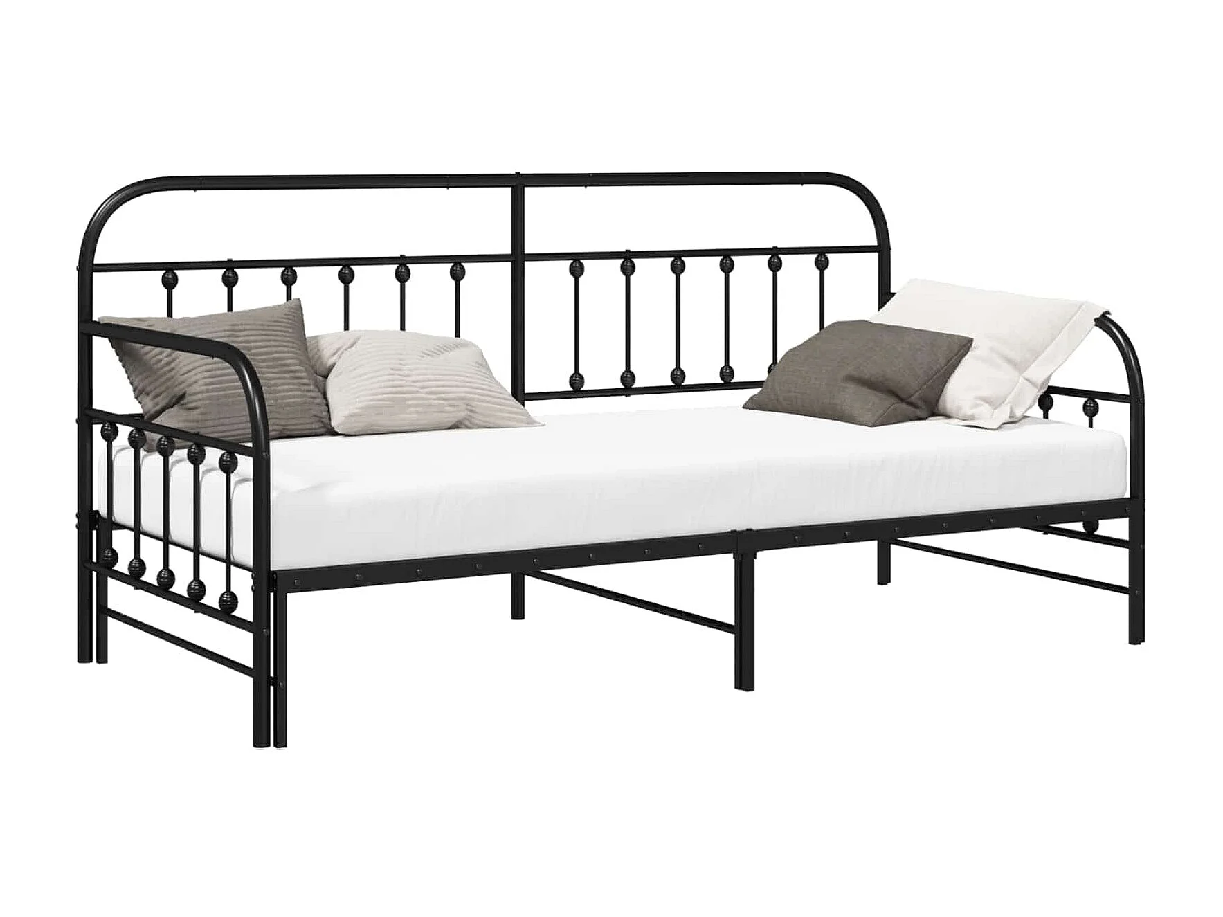 Tagesbettrahmen Schwarz 90 x 200 cm Pulverbeschichteter Stahl