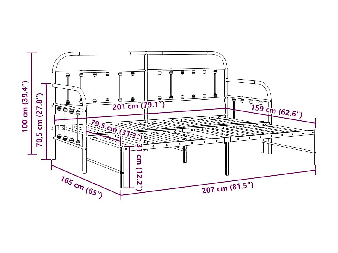 Tagesbettrahmen Weiß 80 x 200 cm Pulverbeschichteter Stahl