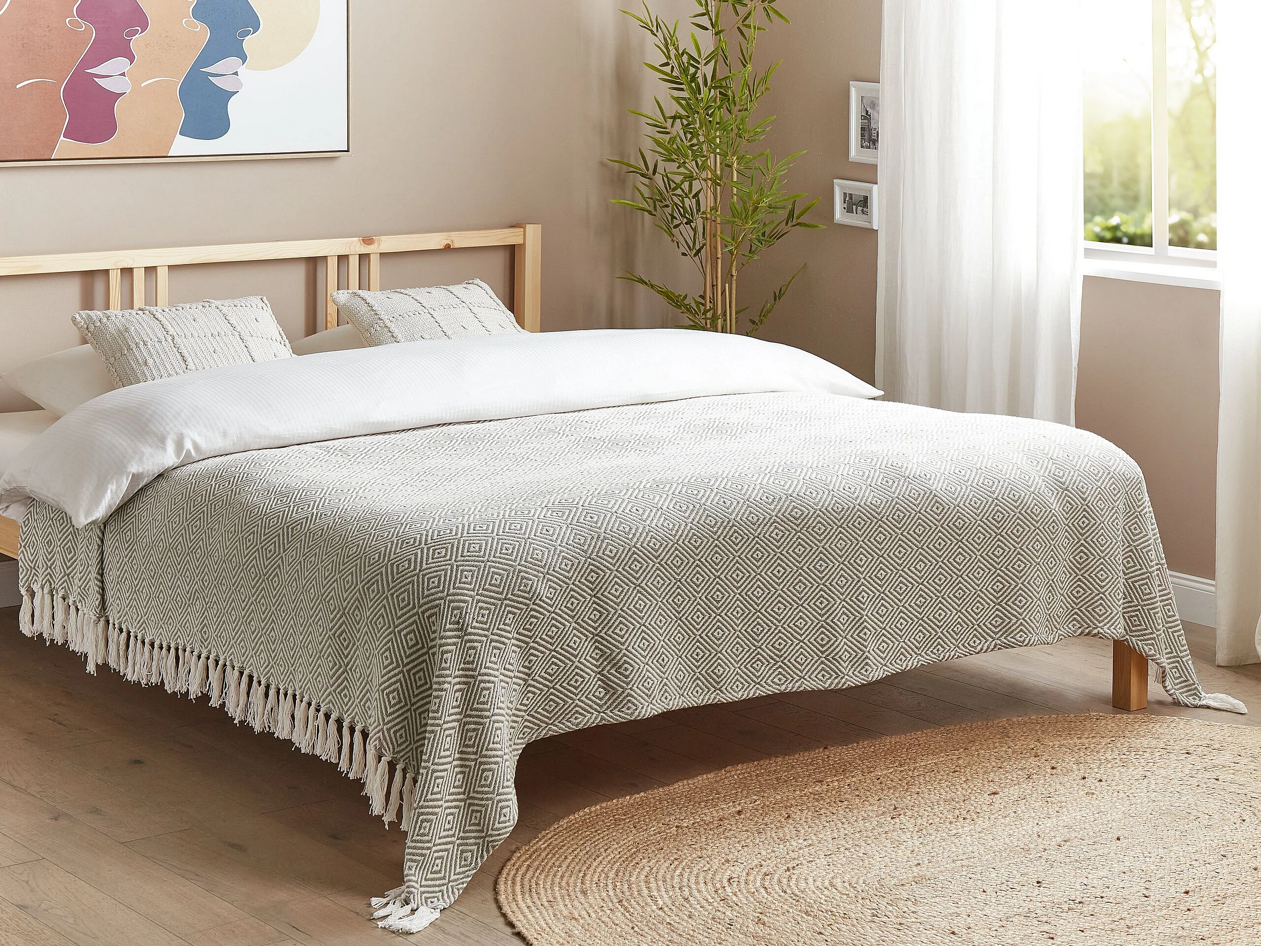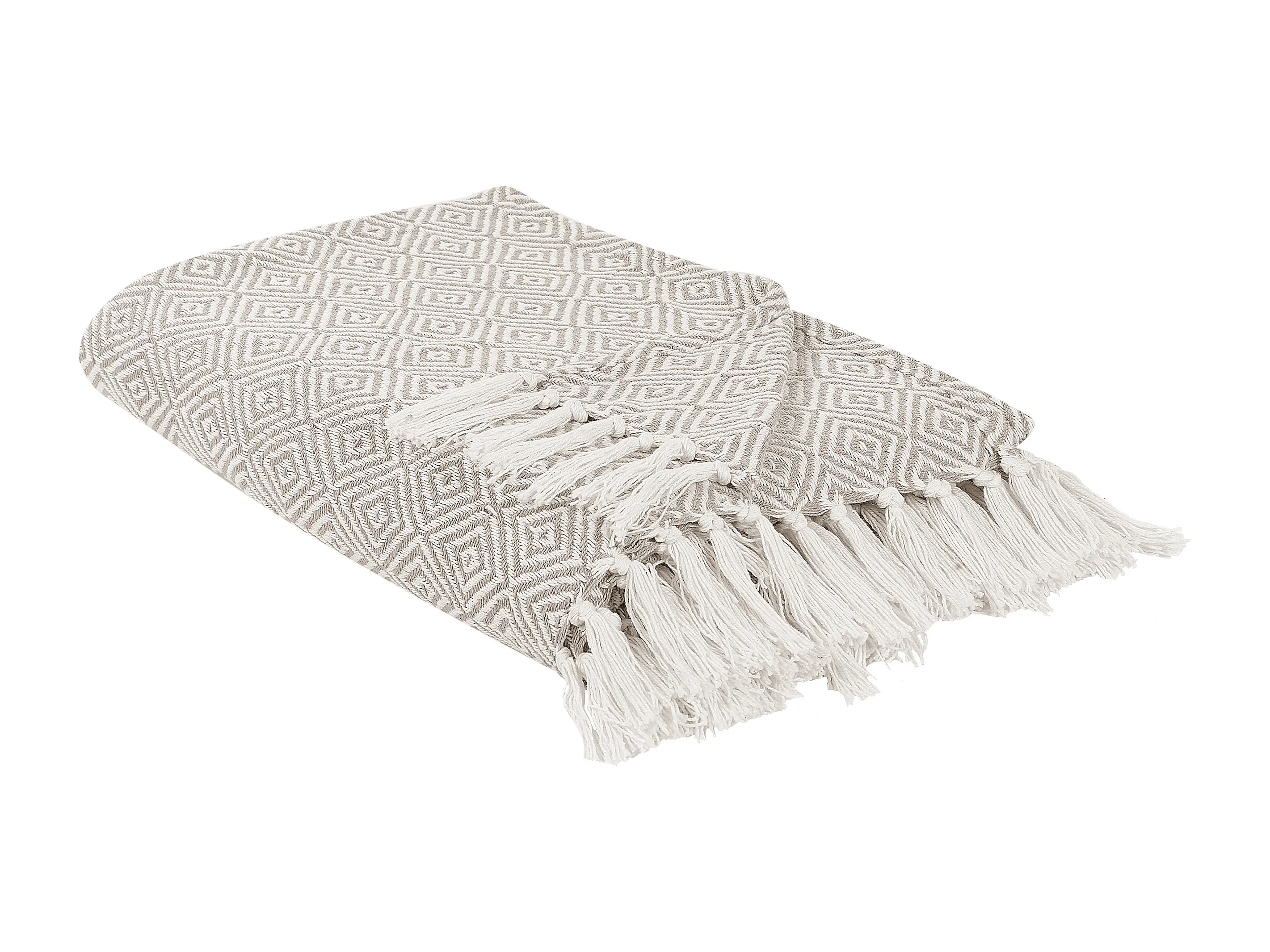 Tagesdecke Baumwolle Beige Taupe 200x220 cm Fransen geometrisches Muster Toutli