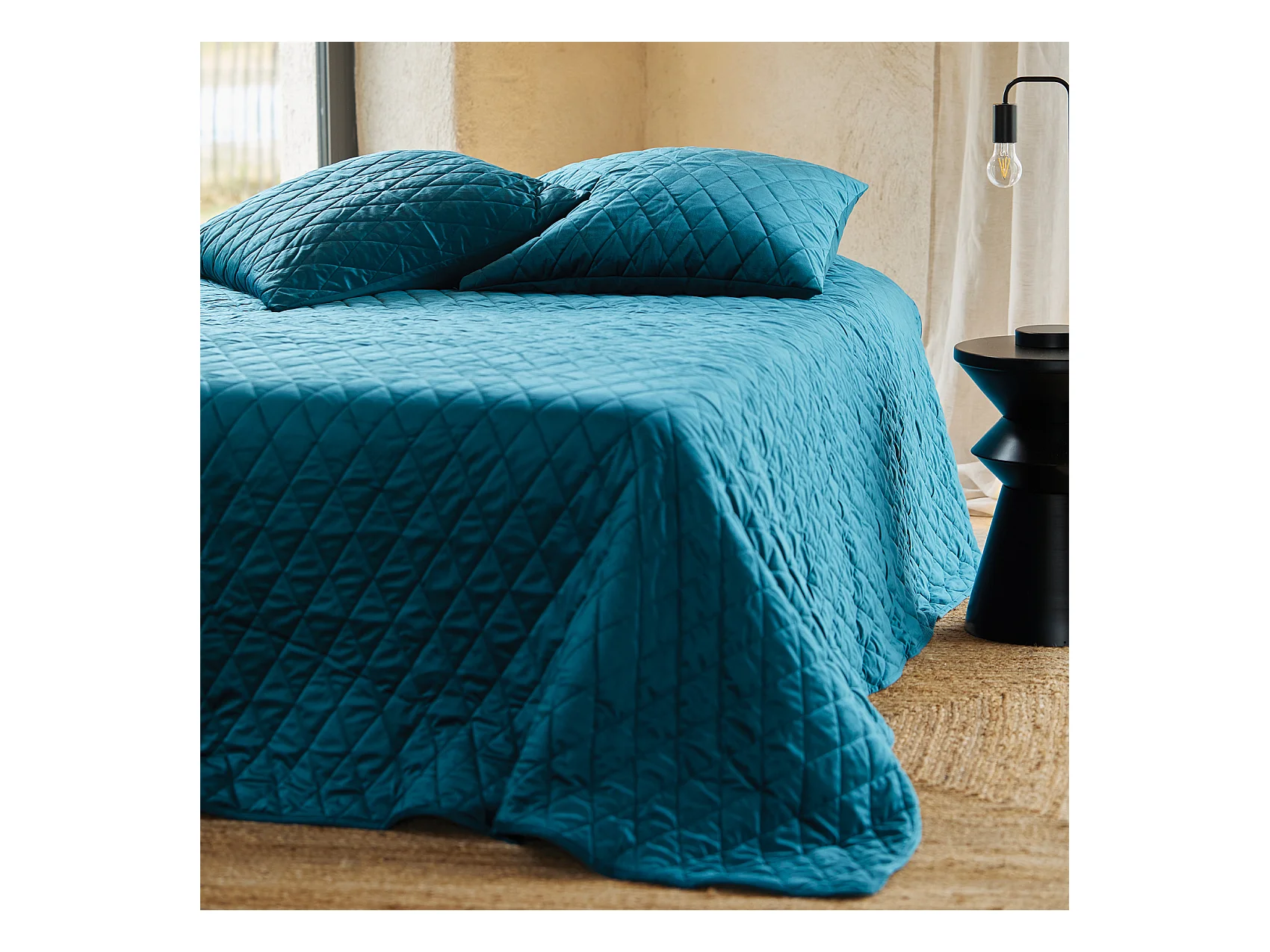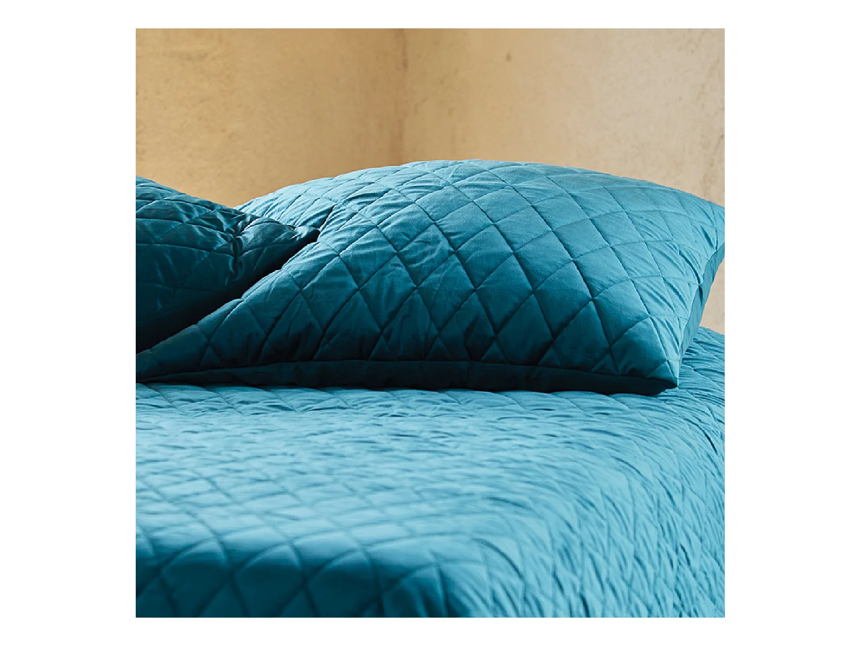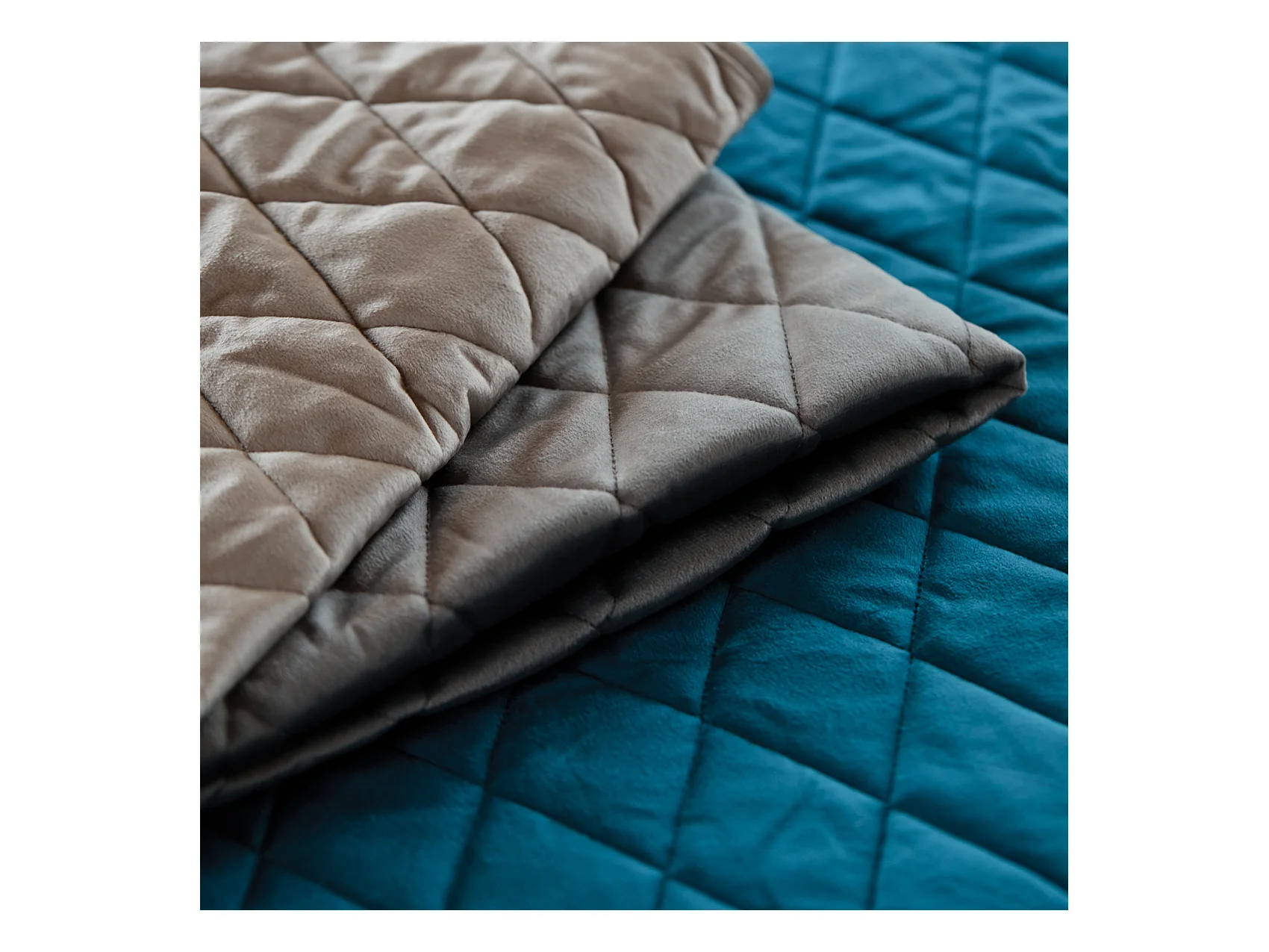 Tagesdecke und Kissenbezüge aus gestepptem Samt