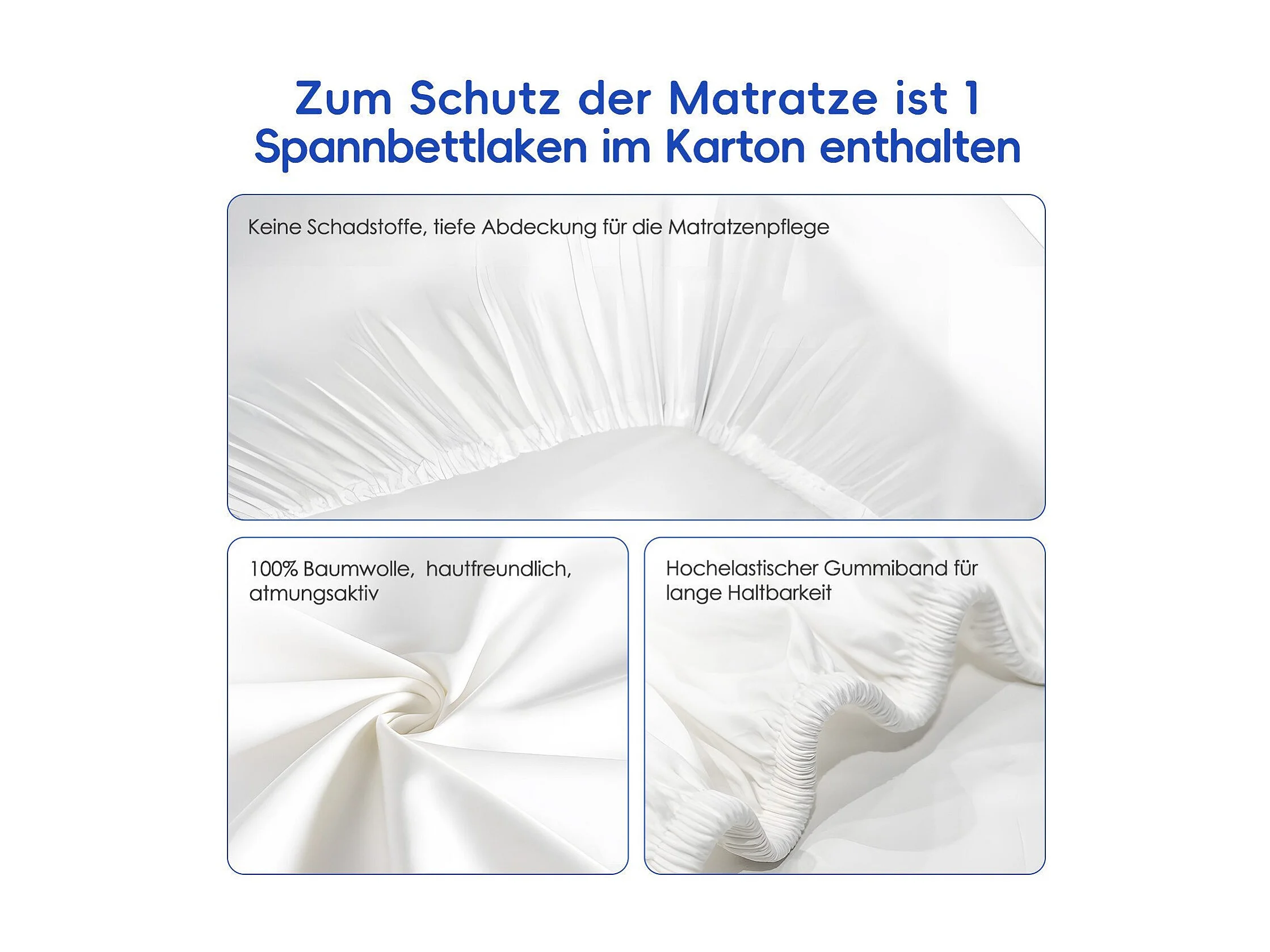 Taschenfederkernmatratze 160 x 200 cm - 7 Komfortzonen - Rückenentlastung - Stärke 22cm - H3 - Memory Schaum - mit Spannbettlaken - Atmungsaktiv - Weiß