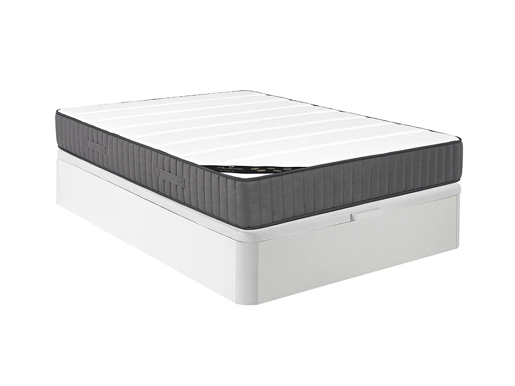 Taschenfederkernmatratze-Bettgestell-Set - 140 x 190 cm - Hybridmatratze - 7 Zonen - Hochelastischer Kaltschaum - Stärke 26 cm - Weiß - AUDACE von PALACIO