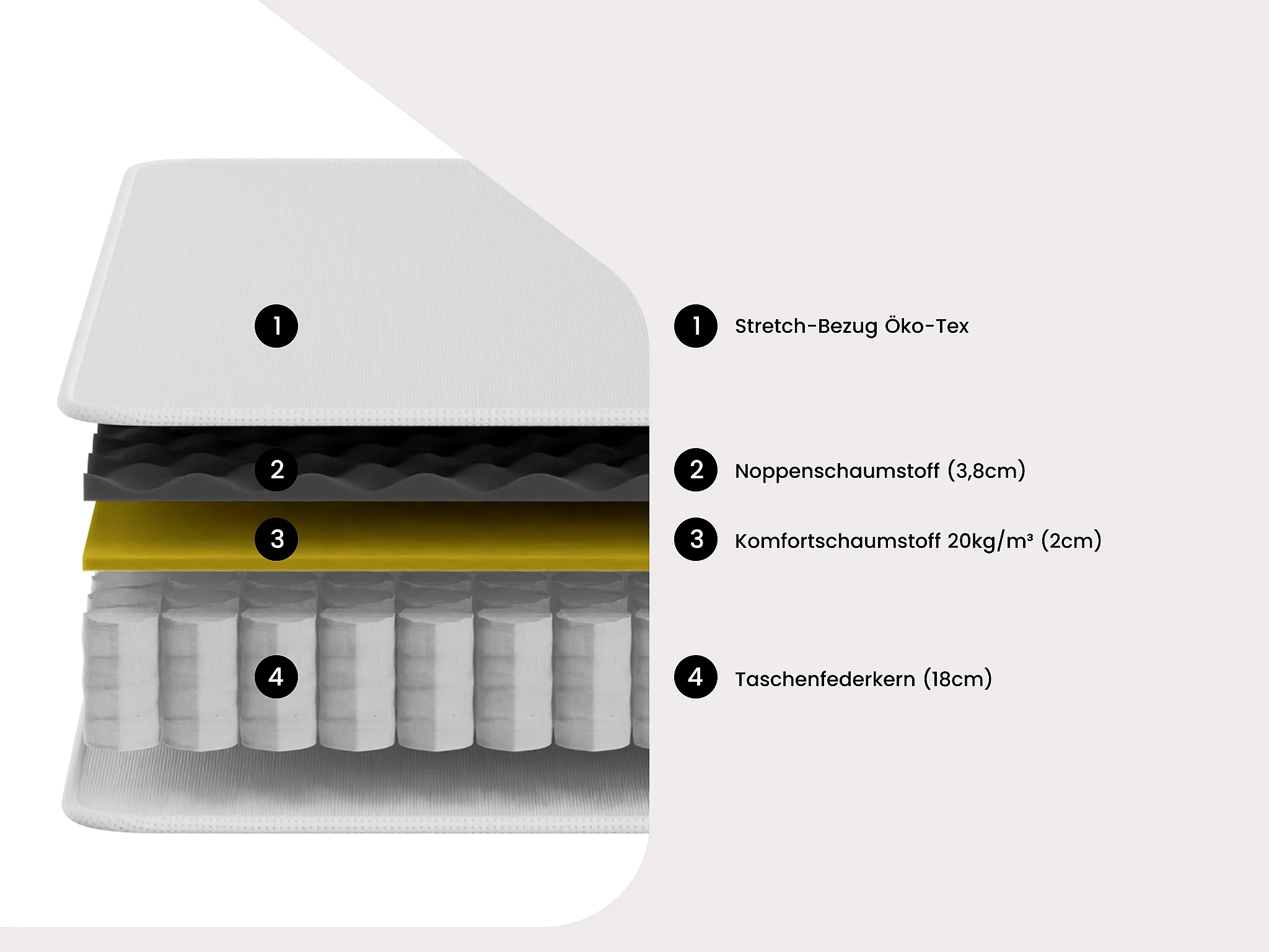Taschenfederkernmatratze-Bettgestell-Set - 180 x 200 cm - mit integriertem Topper - Stärke 24 cm - ALTIER von YSMÉE