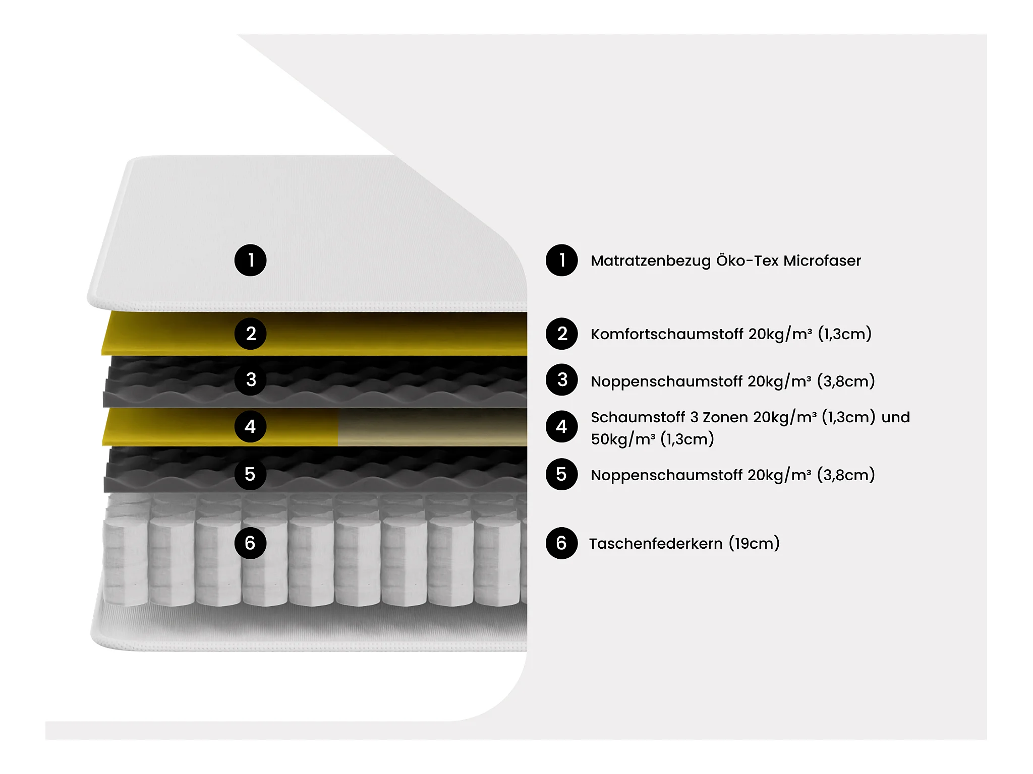 • Auflage Noppenschaum und 3-Zonen-Komfortschaumstoff