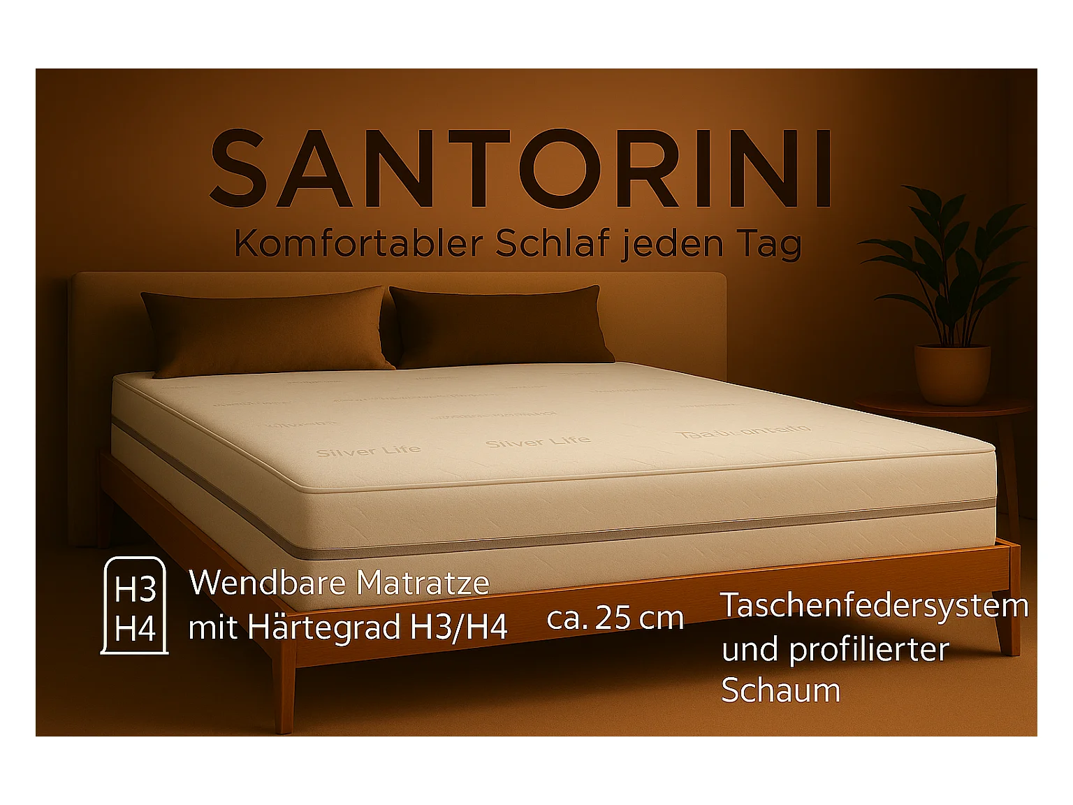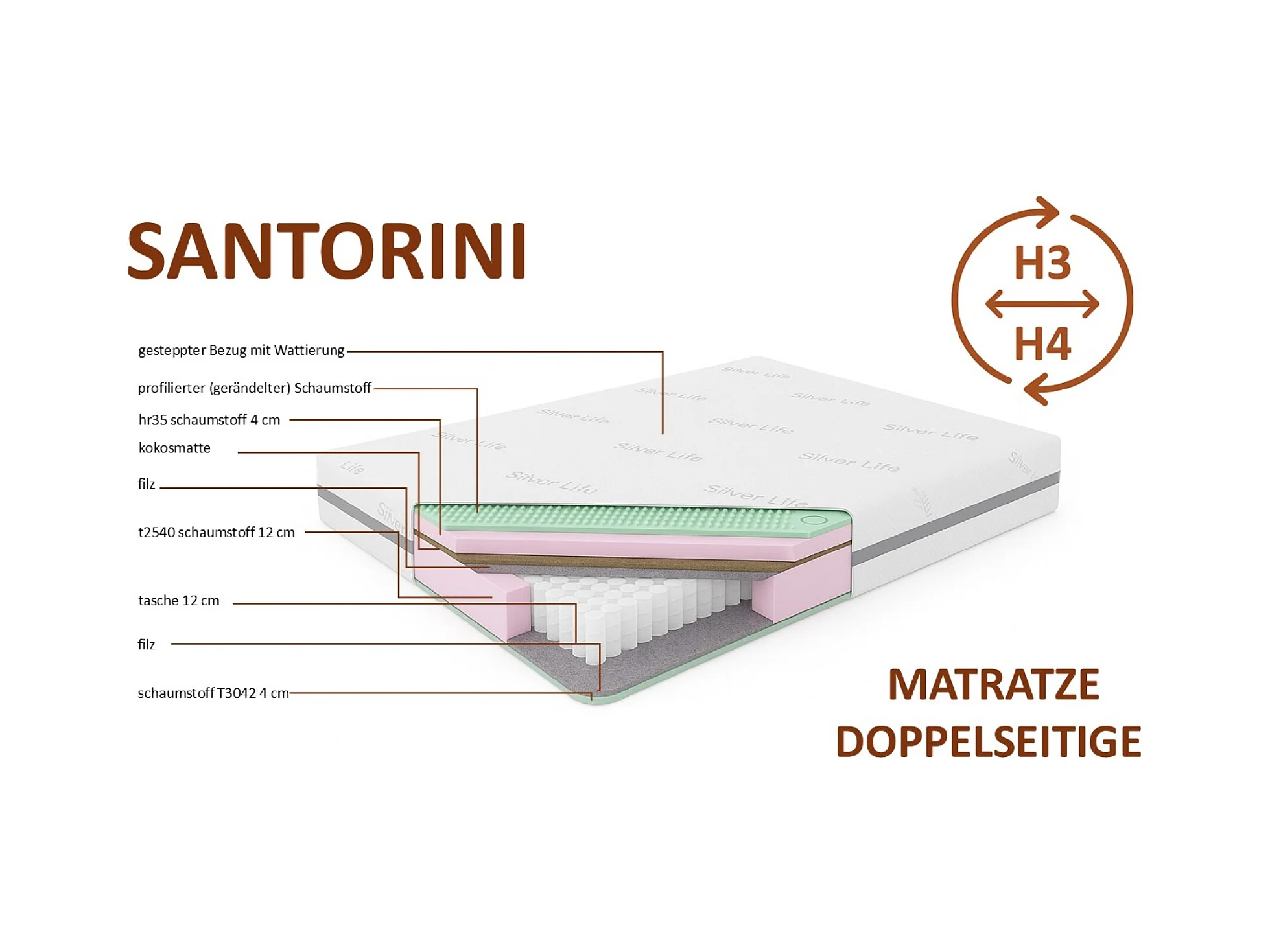 Taschenmatratze Matratze SANTORINI, 200x200 cm, H3/H4