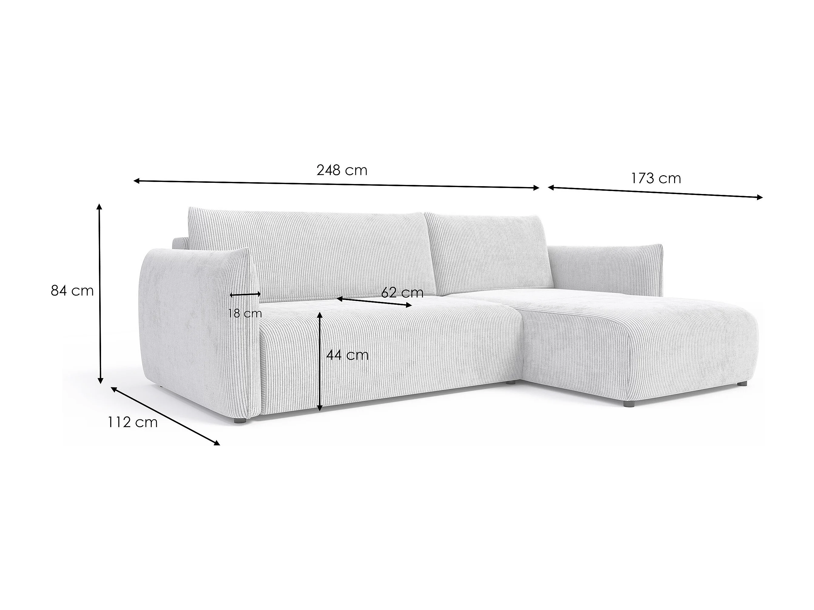 TAUER Ecksofa 3-Sitzer links, perlweiß