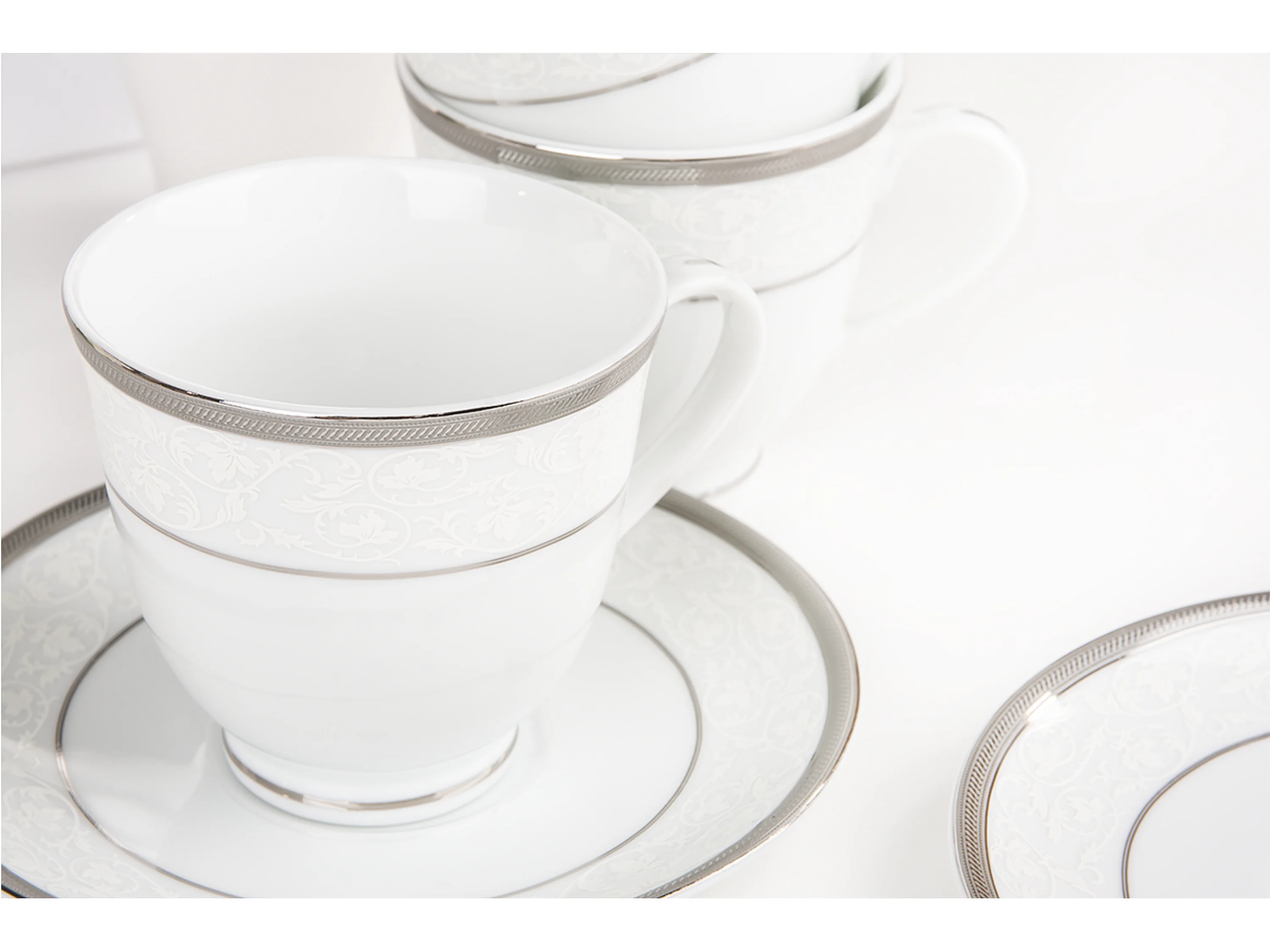 Teeservice für 6 Personen (12 Artikel) - Porzellan - Platin - GEOS PLATIN