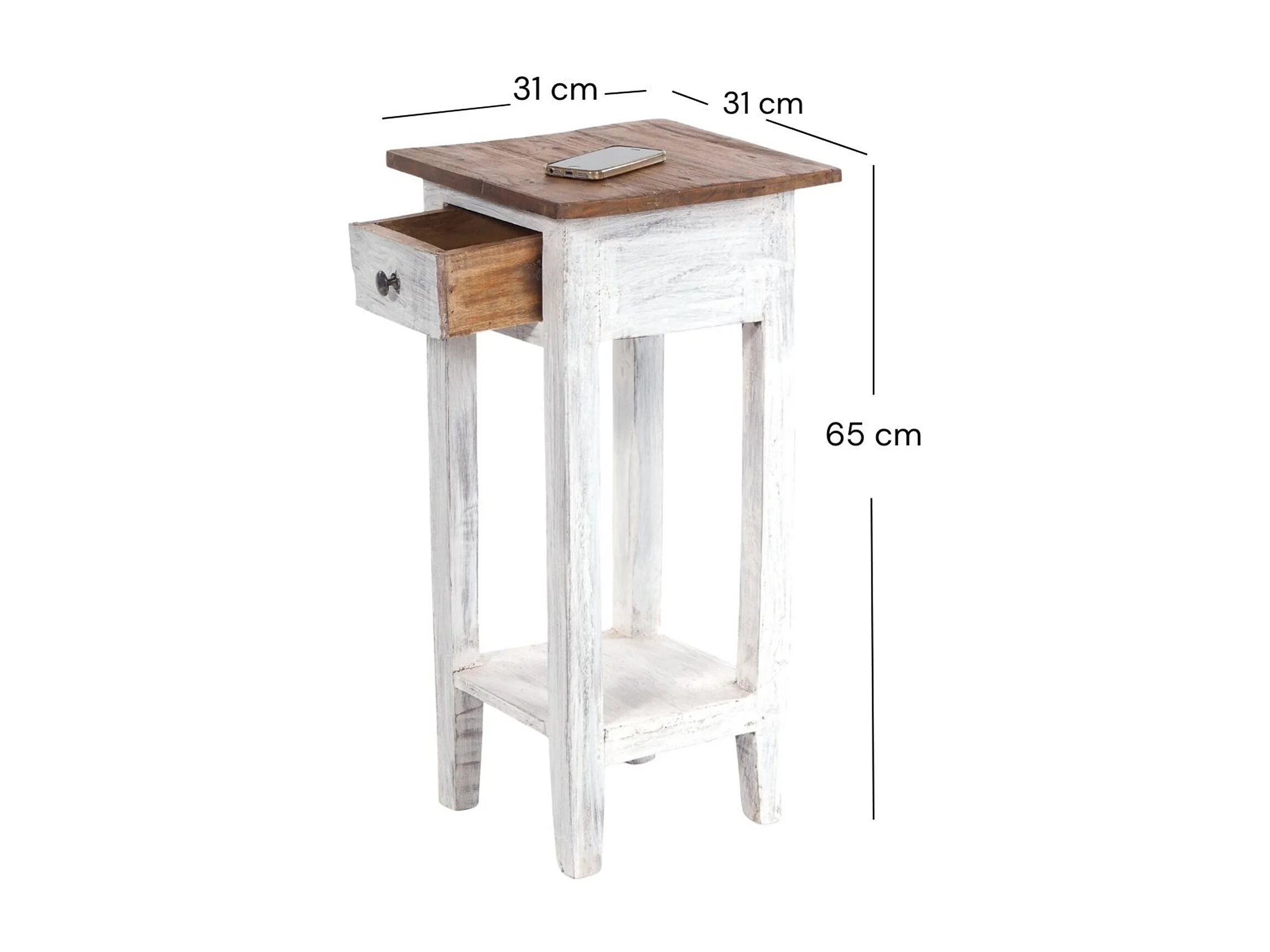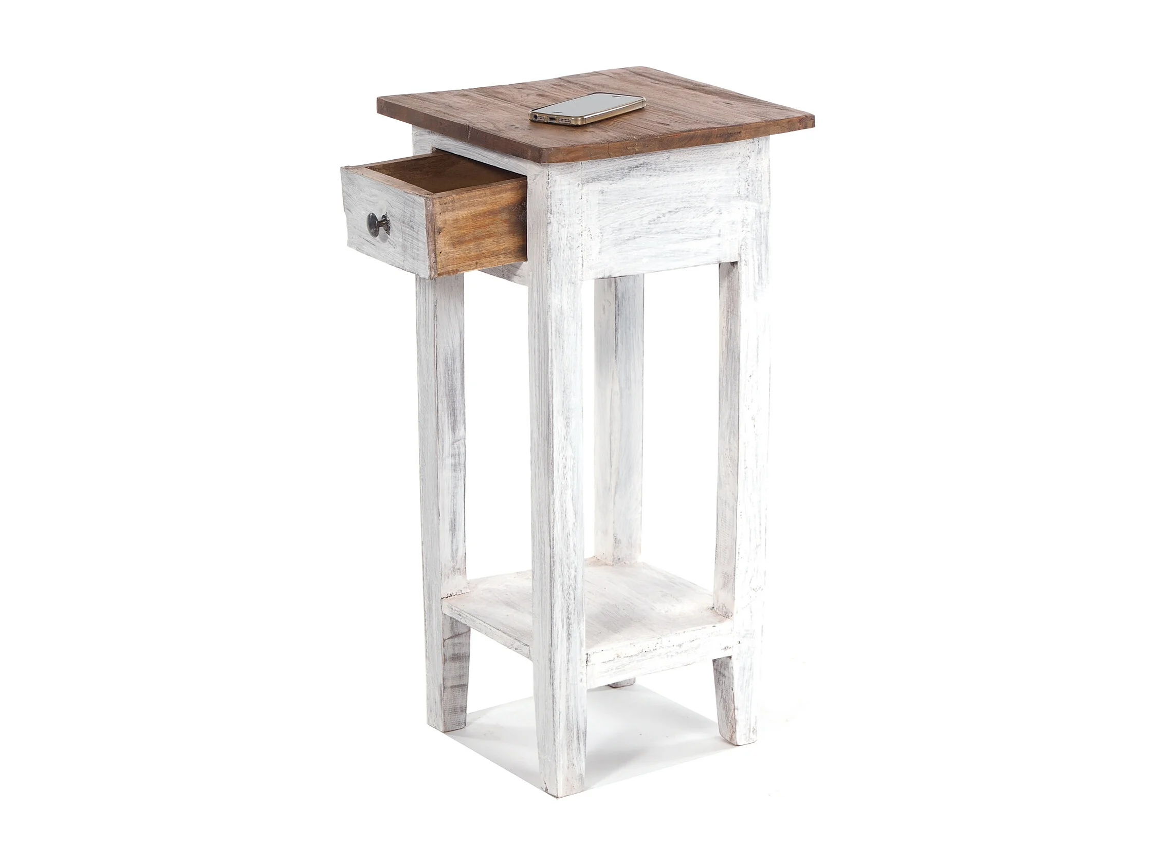 TELEFONTISCH DRAWER 65 Mahagoni Recyclingholz, mit Schublade 05 weiß-natur