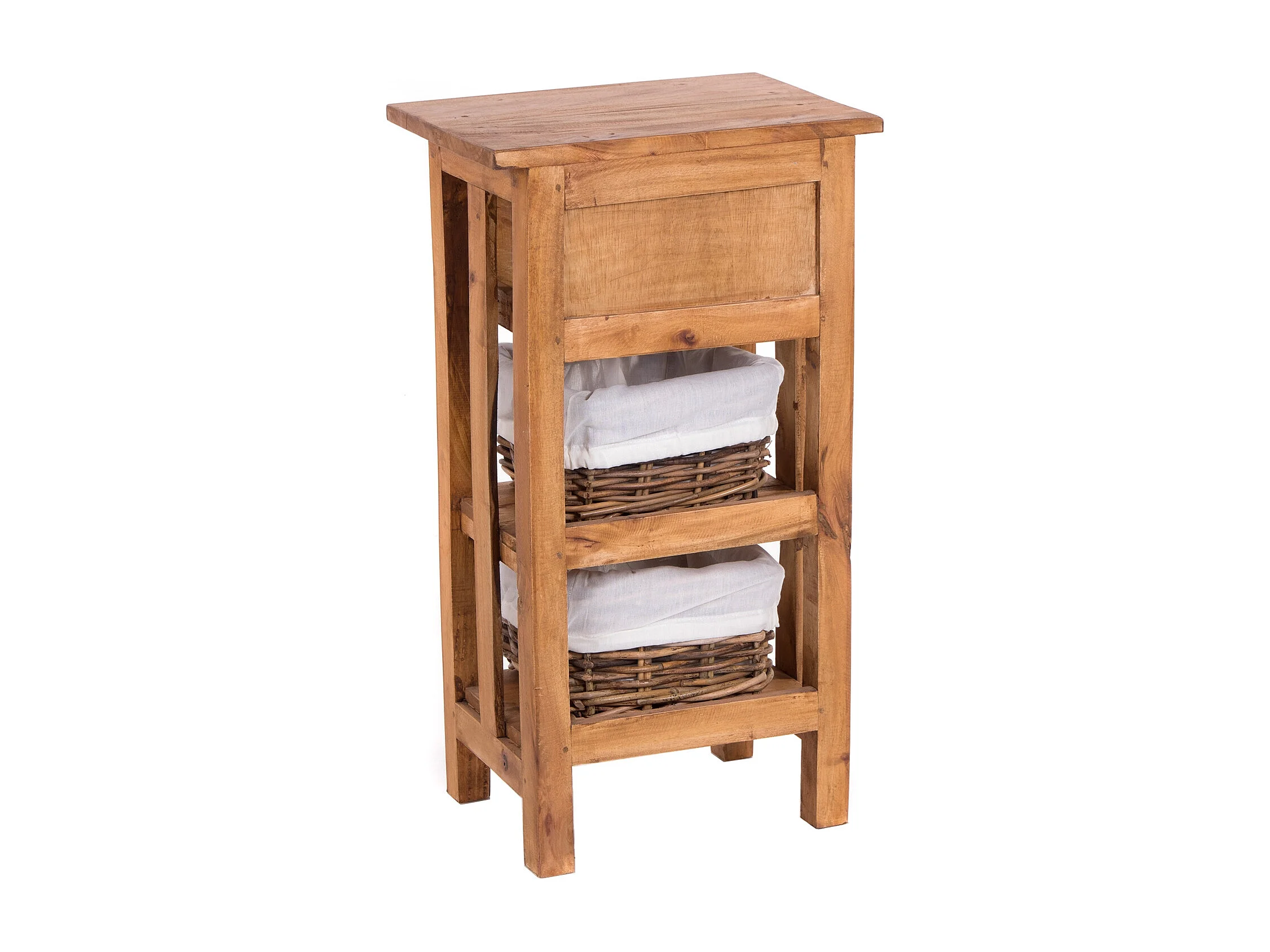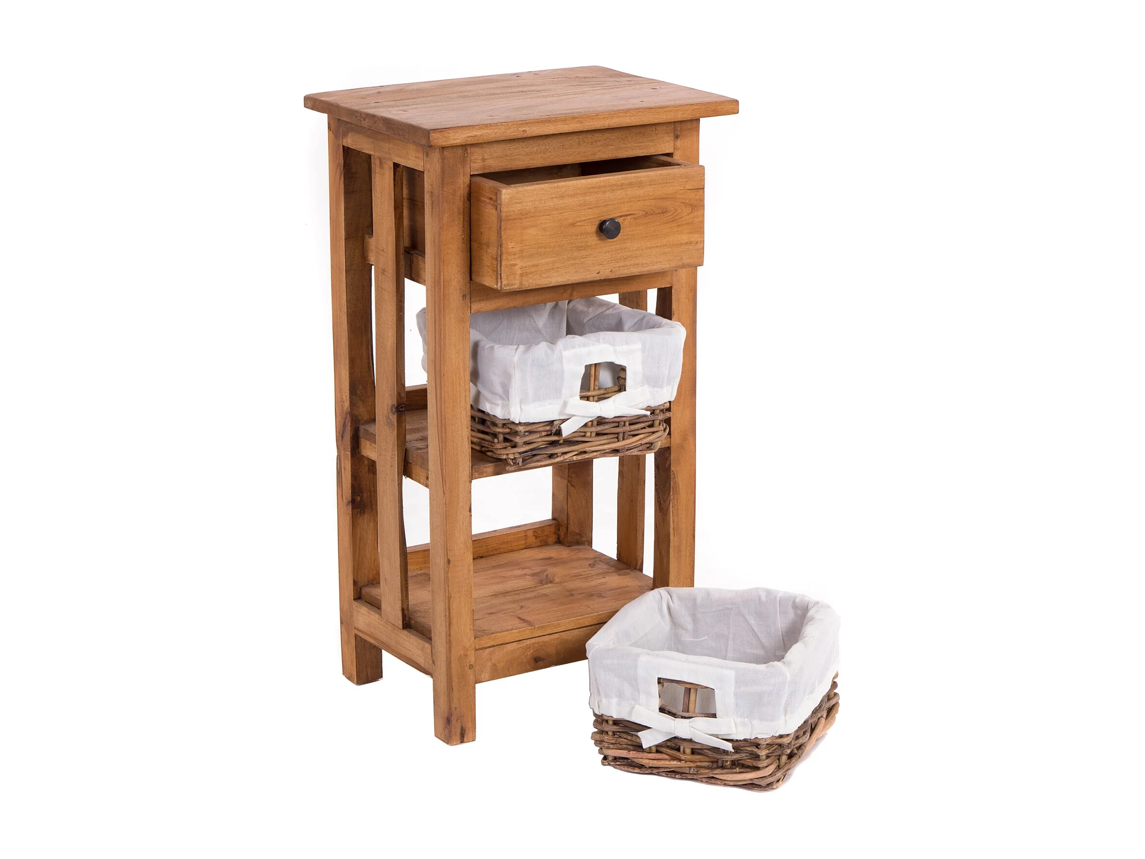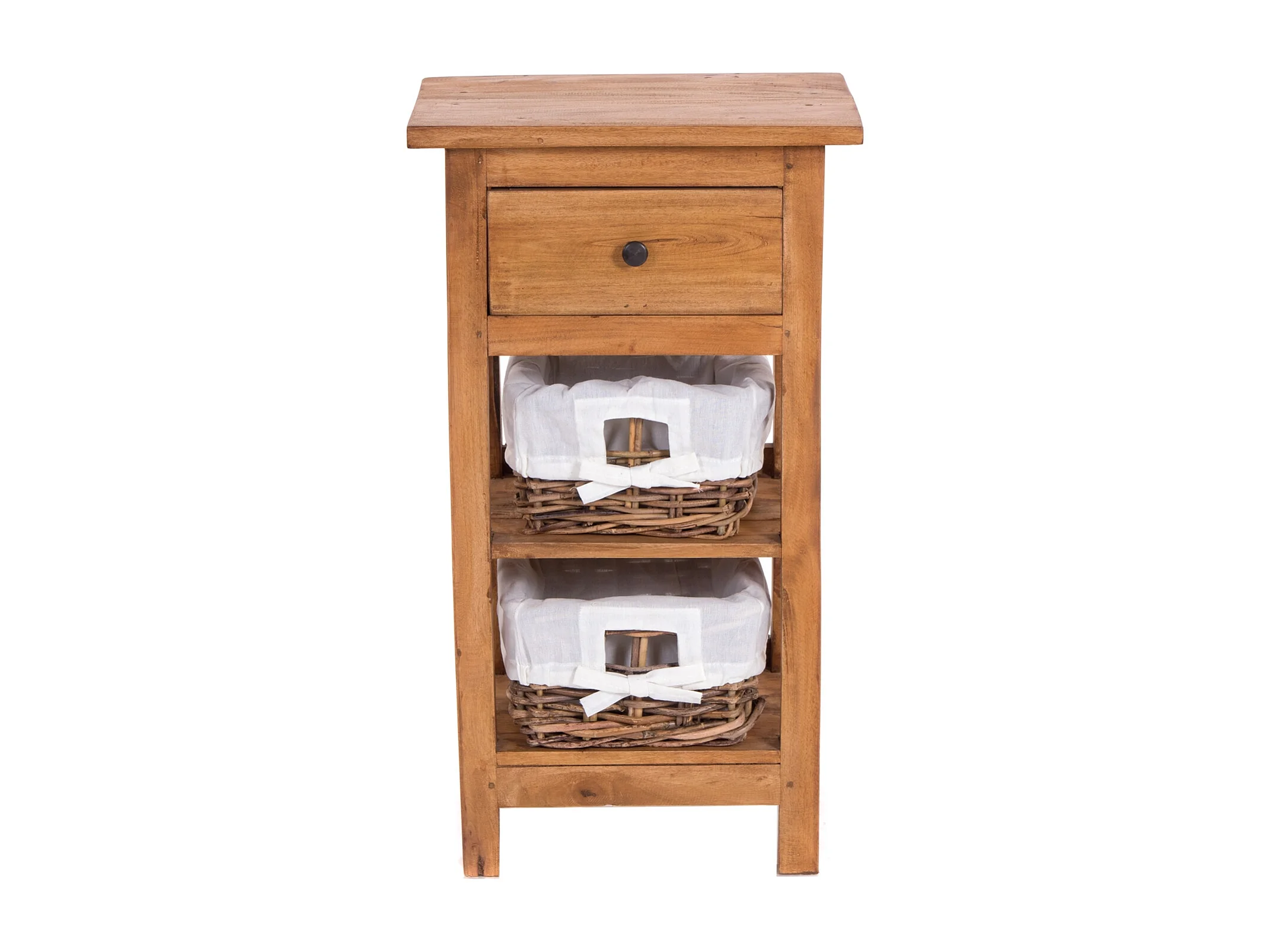 TELEFONTISCH RATTAN 70 mit 2 Rattan-Körben und Schublade, Mahagoni massiv 08 honigfarben gewachst