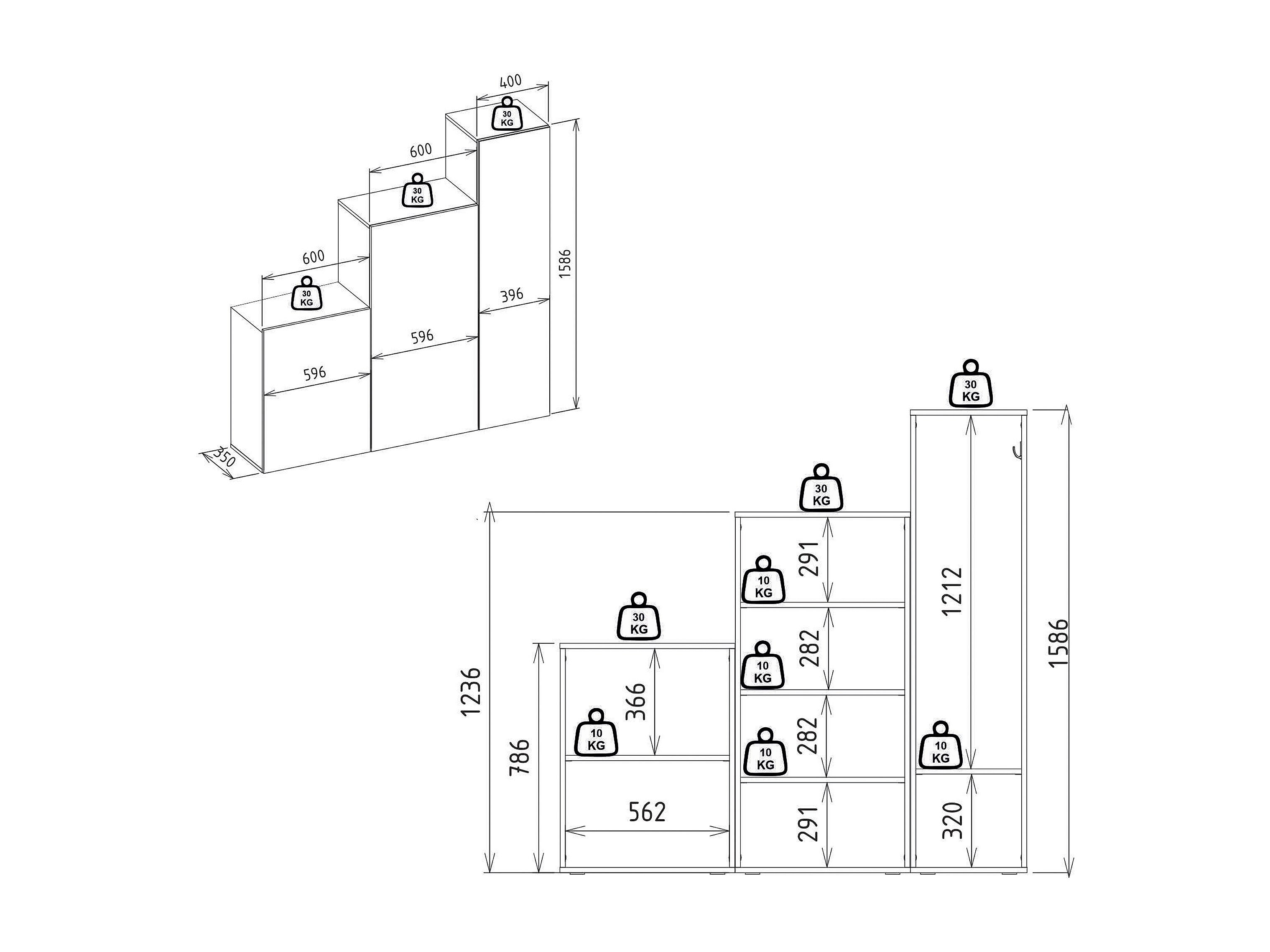 Kleiderschrank mit 3 Türen - beliebig kombinierbar - Mit Spiegel - 160 cm - Weiß - TELEZA