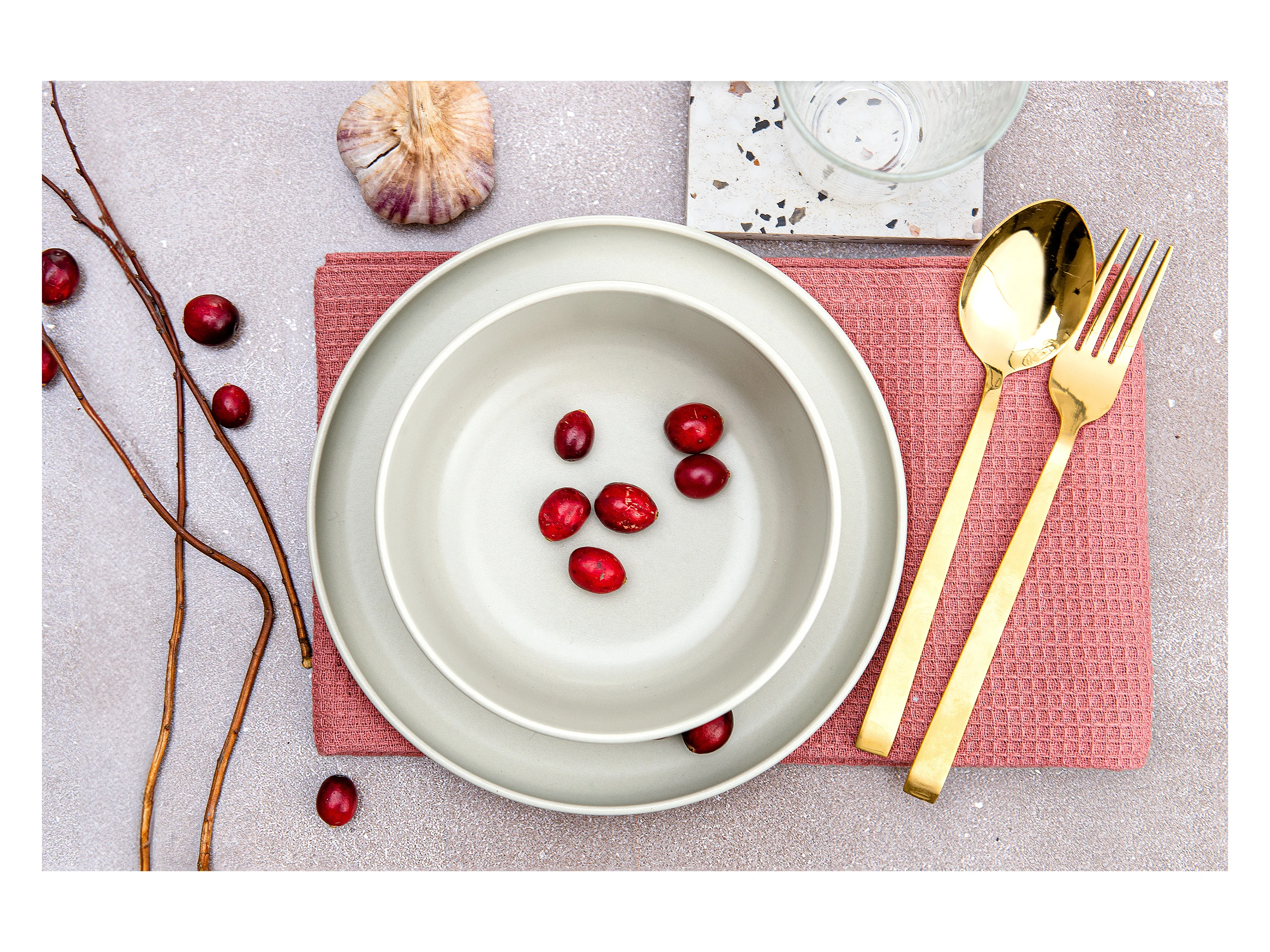 Teller-Set 6-tlg Speiseteller - beige/grün/grau - VICTO