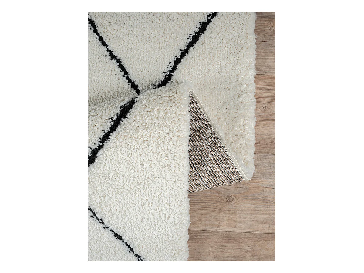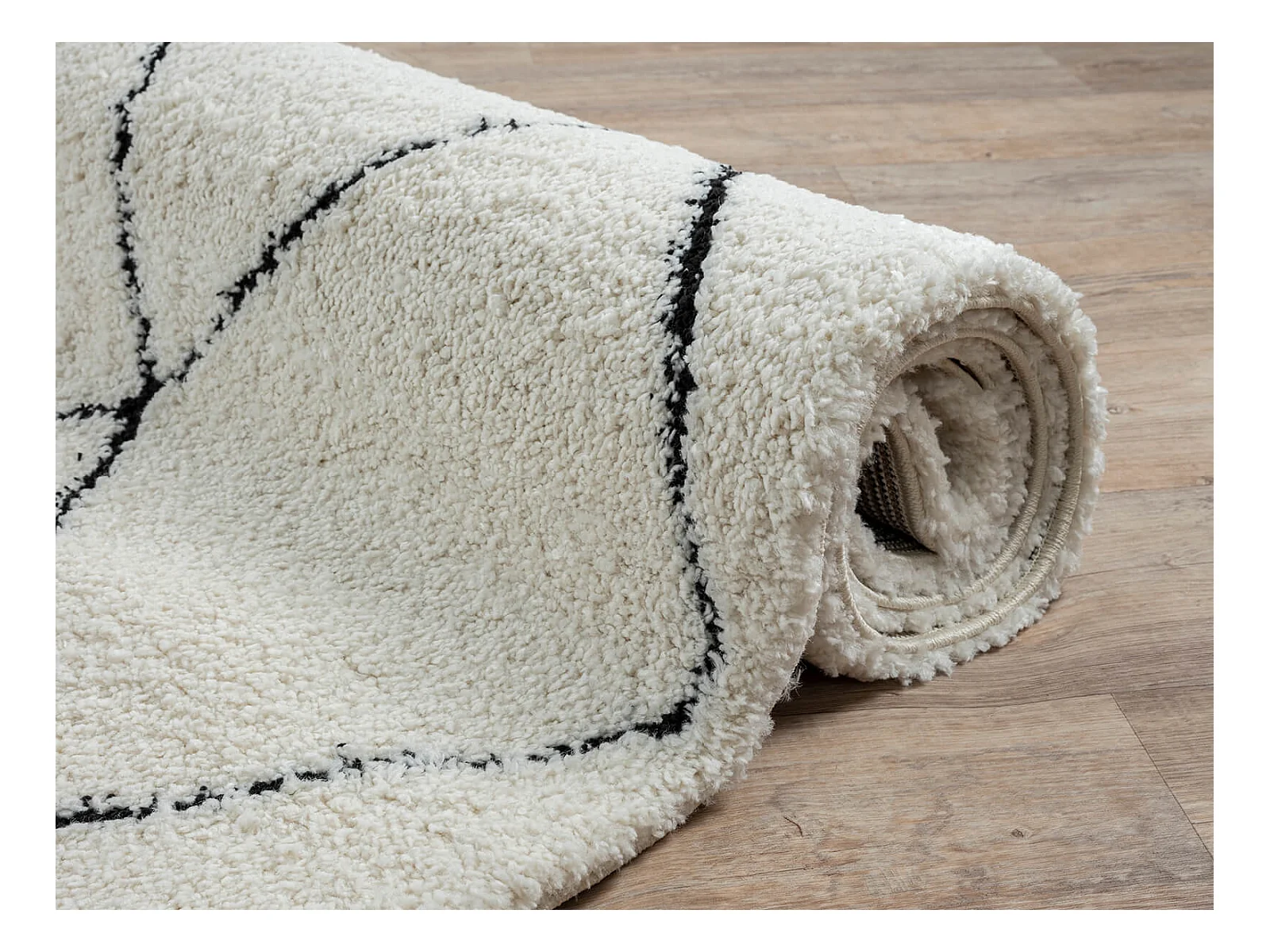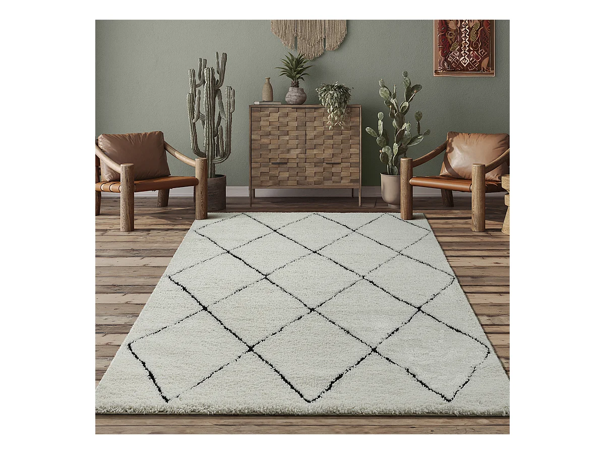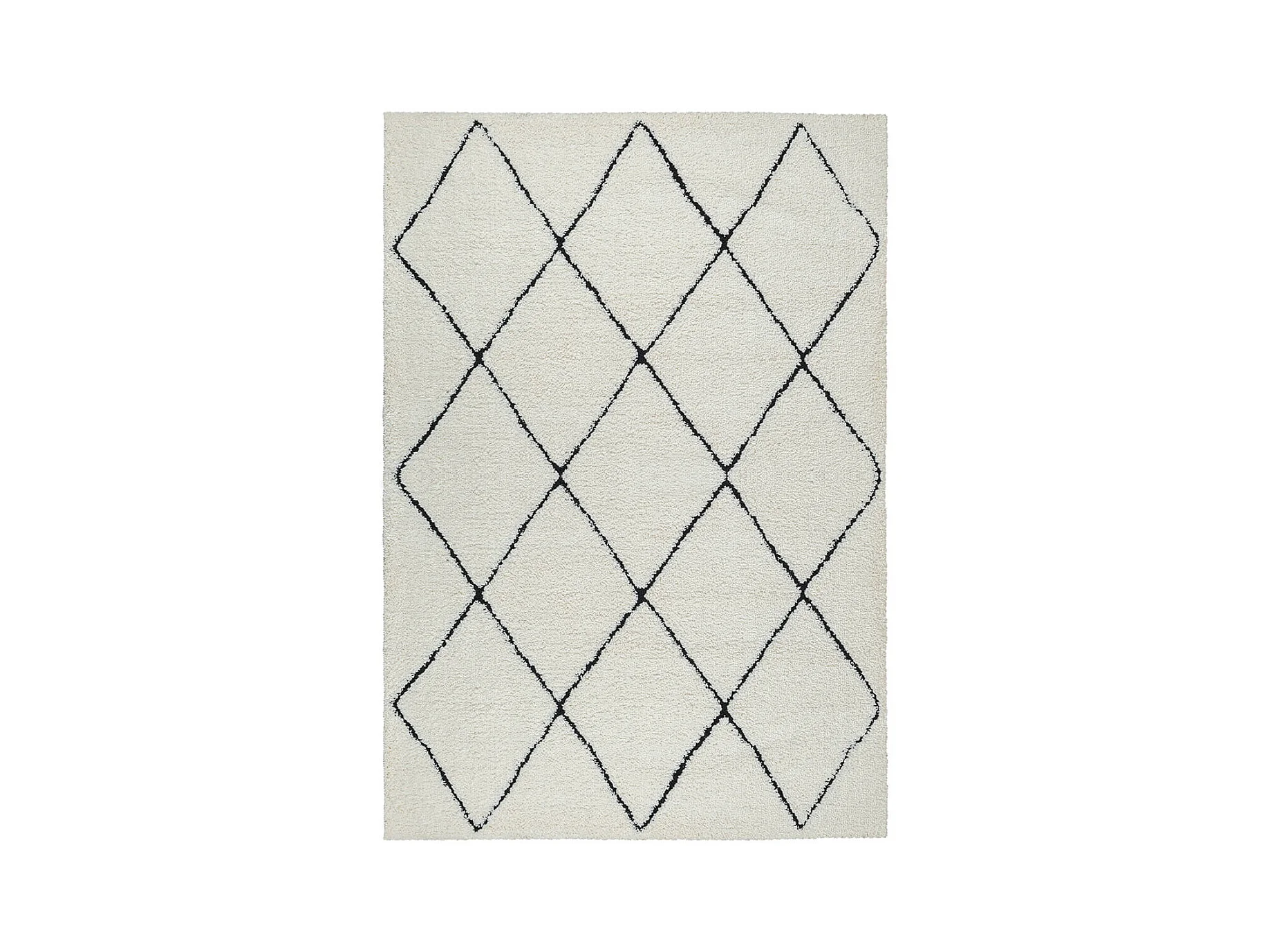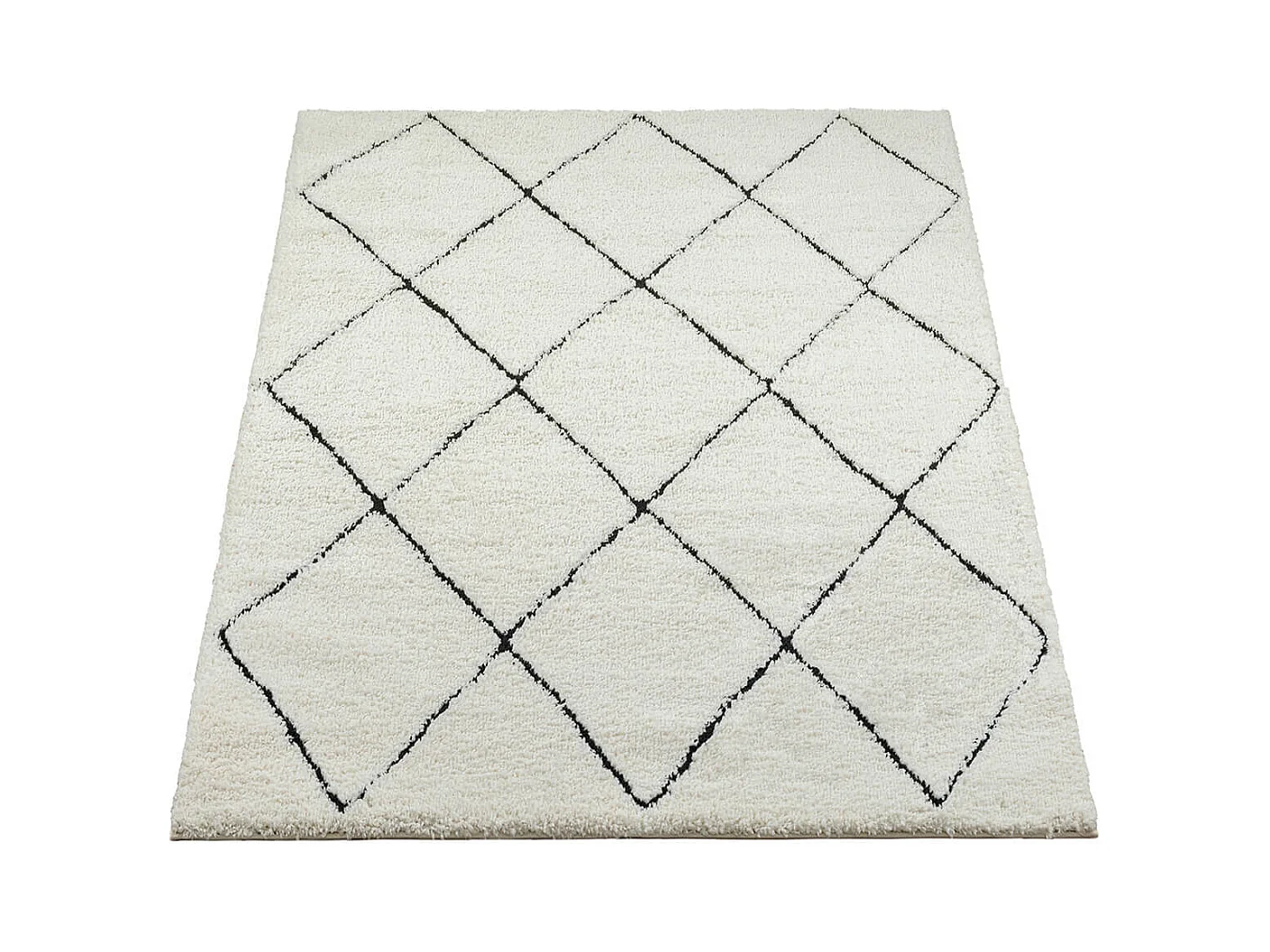 Teppich Bahar Shaggy Modern Rauten Muster, Schwarz Weiß, 200 x 290 cm