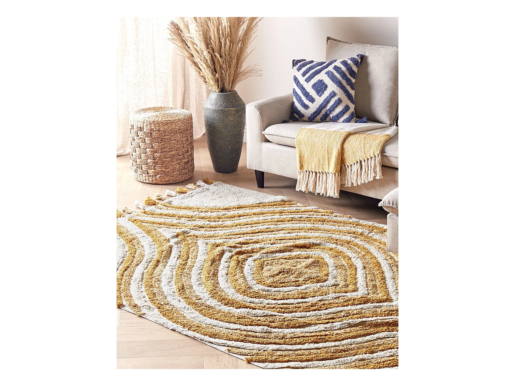 Teppich Baumwolle abstraktes Muster gelb / beige 140 x 200 cm Boho Bingol