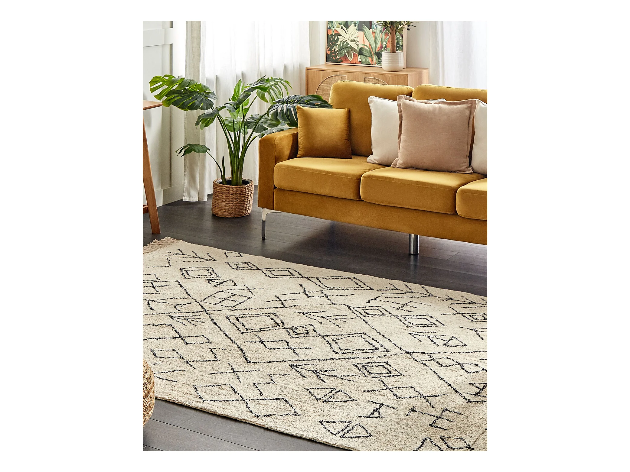 Teppich Baumwolle beige mit geometrischem Muster rechteckig 160 x 230 cm Somek