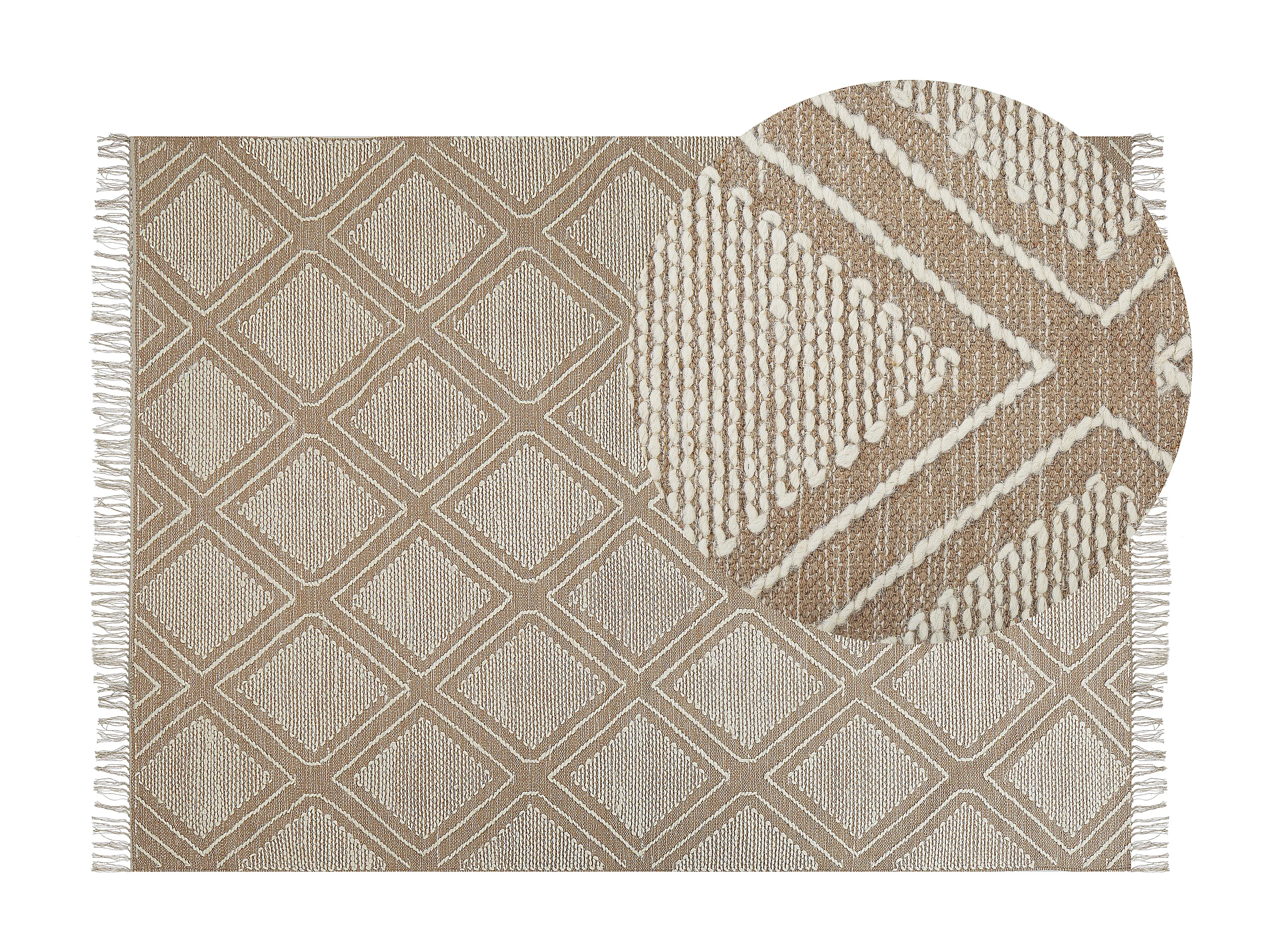 Rechteckiger Teppich mit Quasten Baumwolle Kurzflor 140x200 cm beige/weiß Kacem