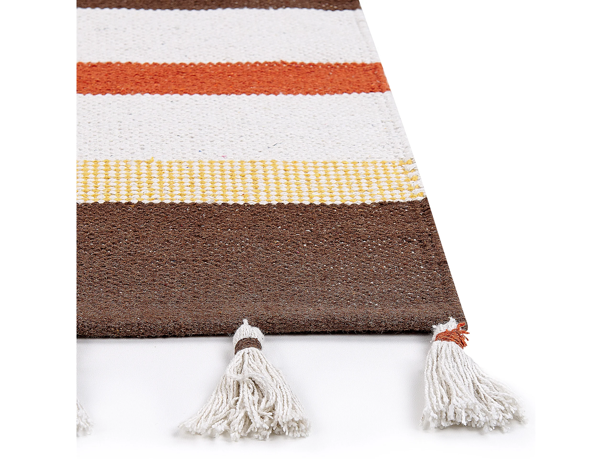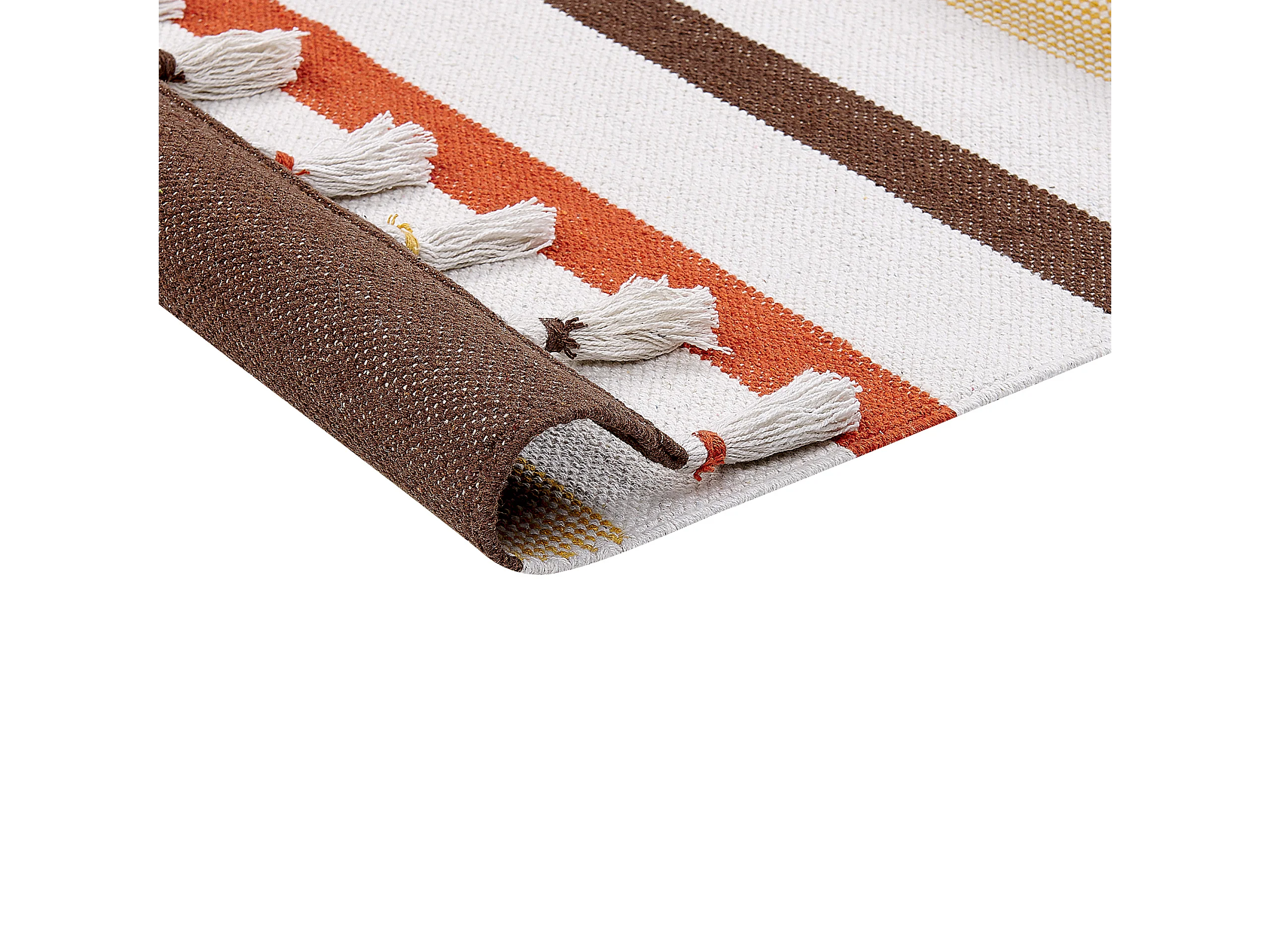 Teppich Baumwolle braun/beige gestreiftes Muster 140x200 cm mit Fransen Hisarli