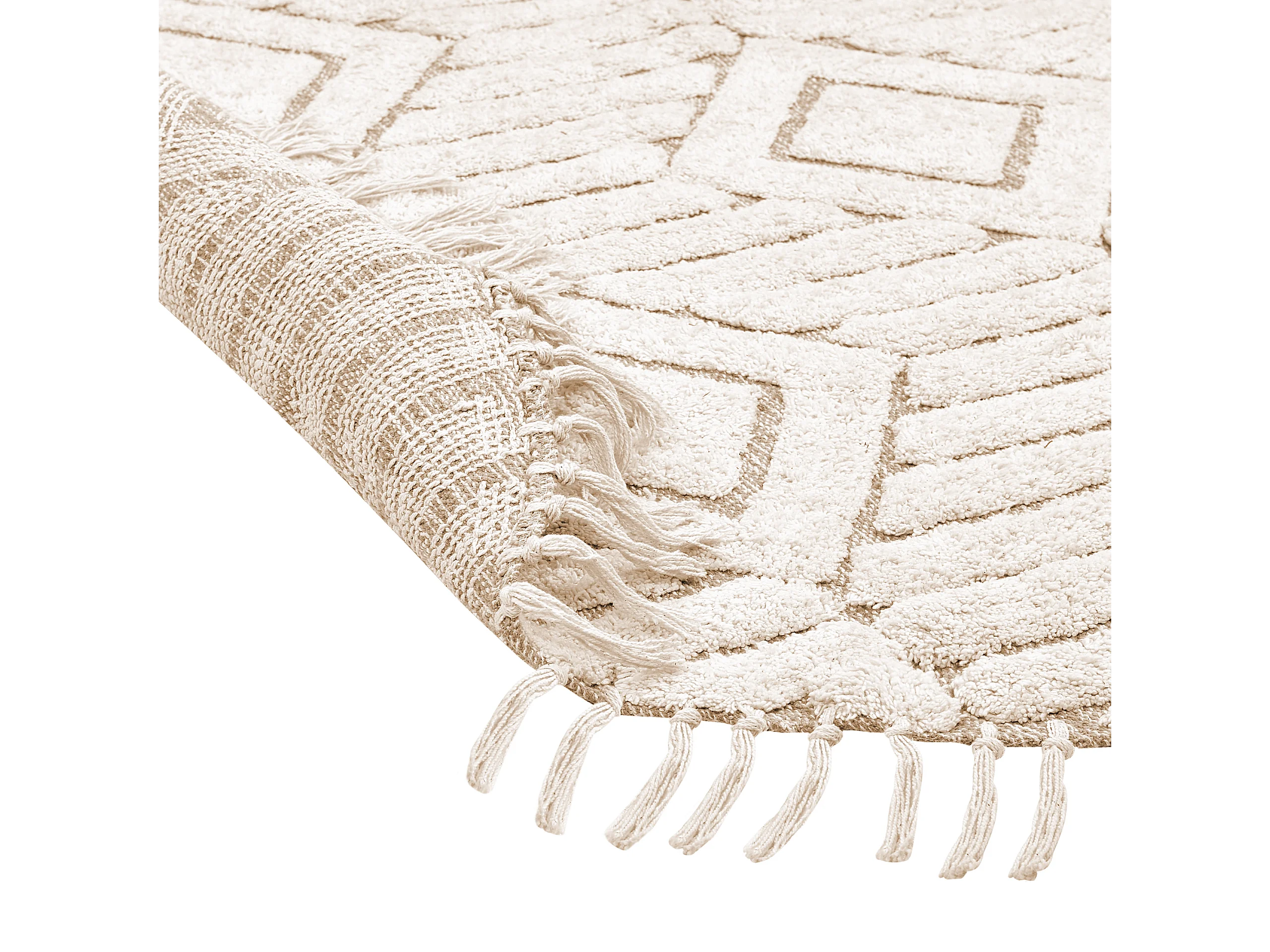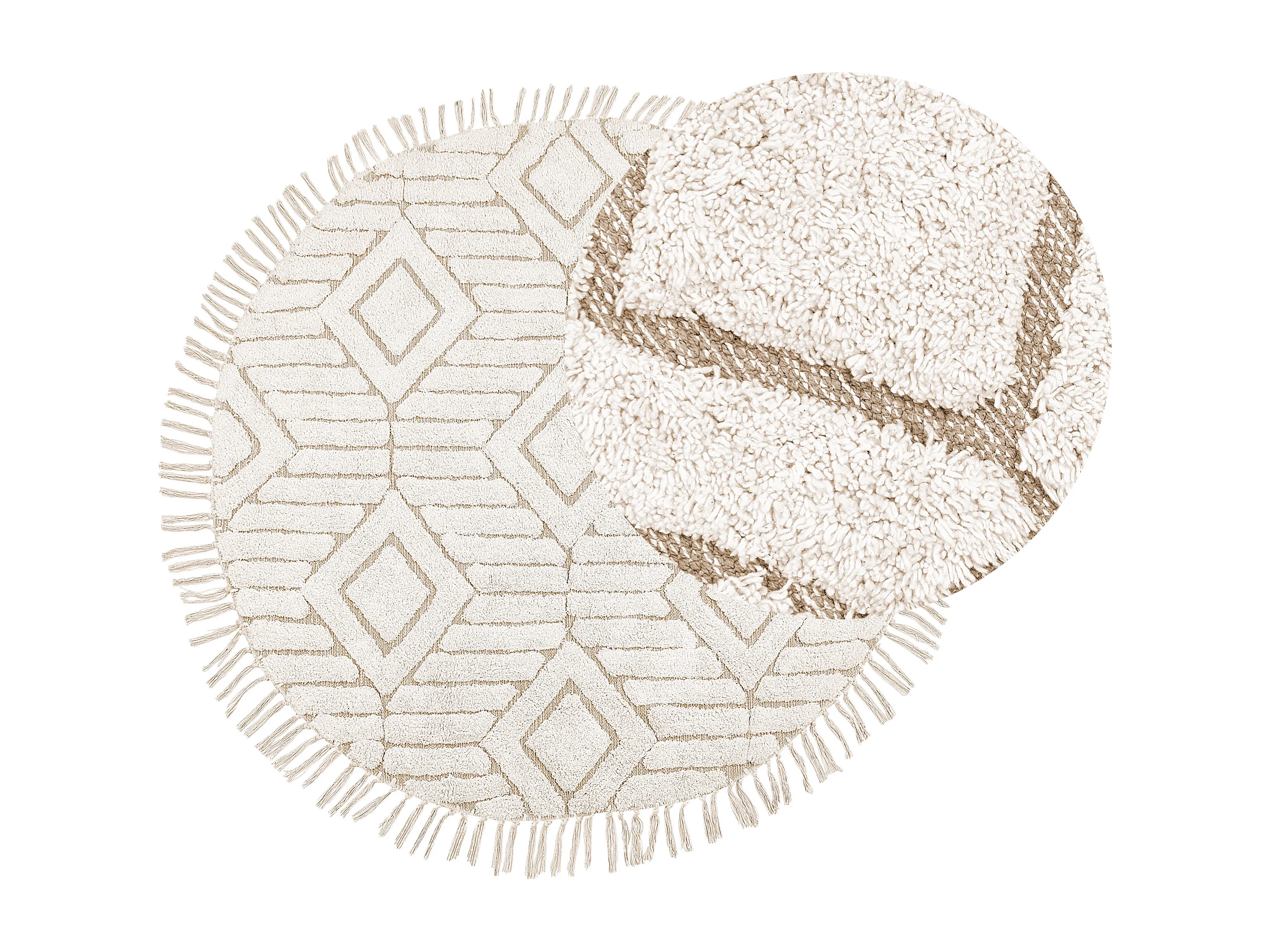 Teppich Baumwolle hellbeige ⌀ 140 cm Fransen HORASAN