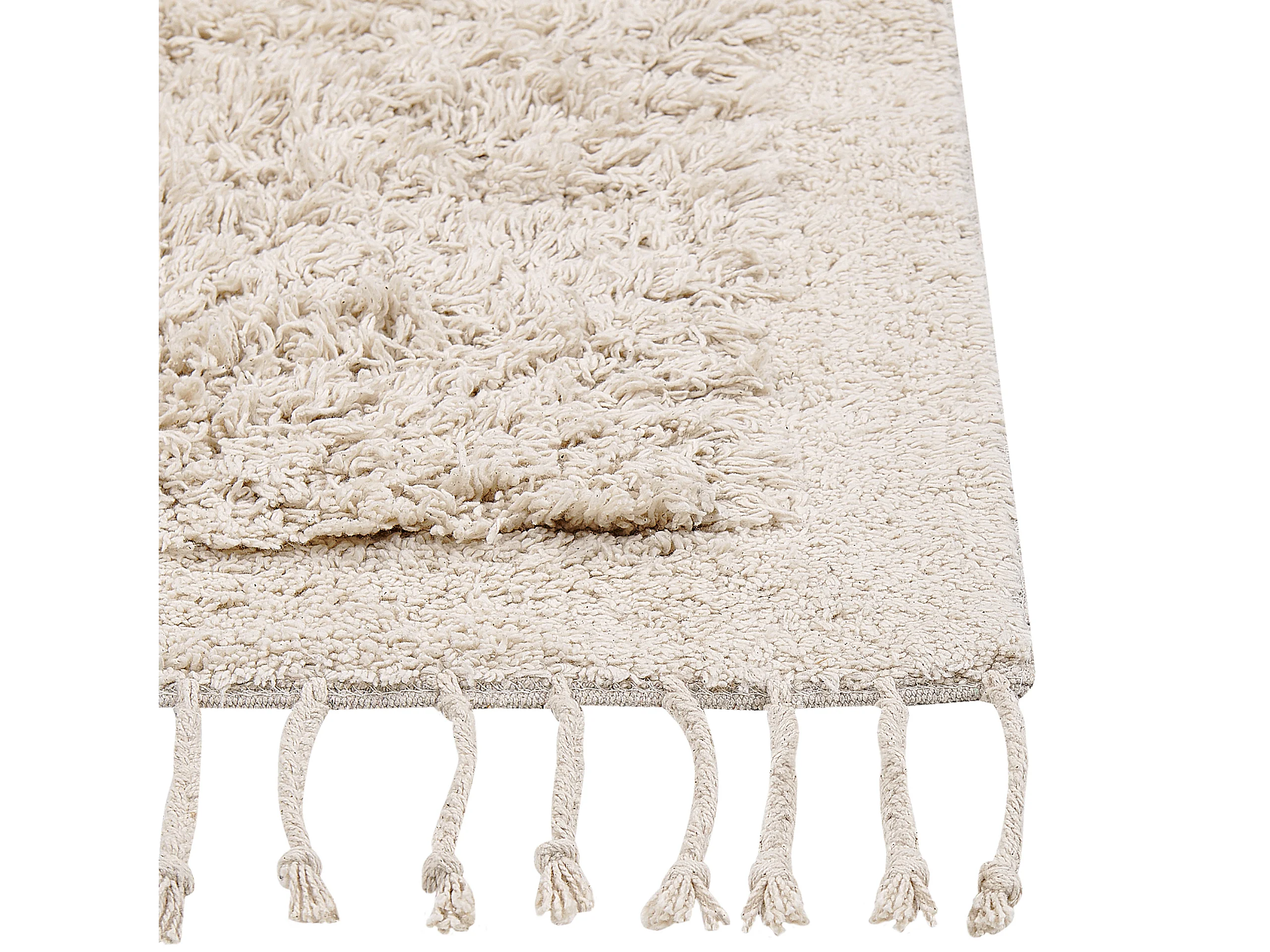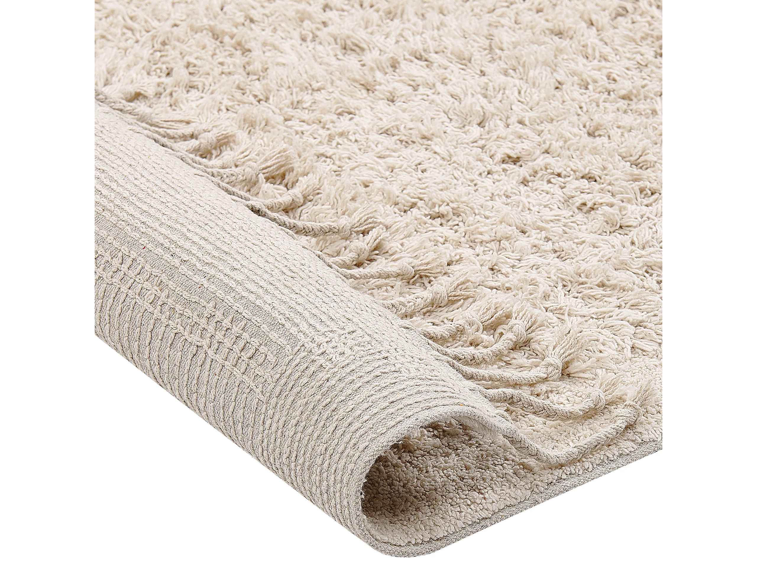 Teppich Baumwolle helles Beige 80x150 cm mit Fransen Hochflor Shaggy Boho Bitlis