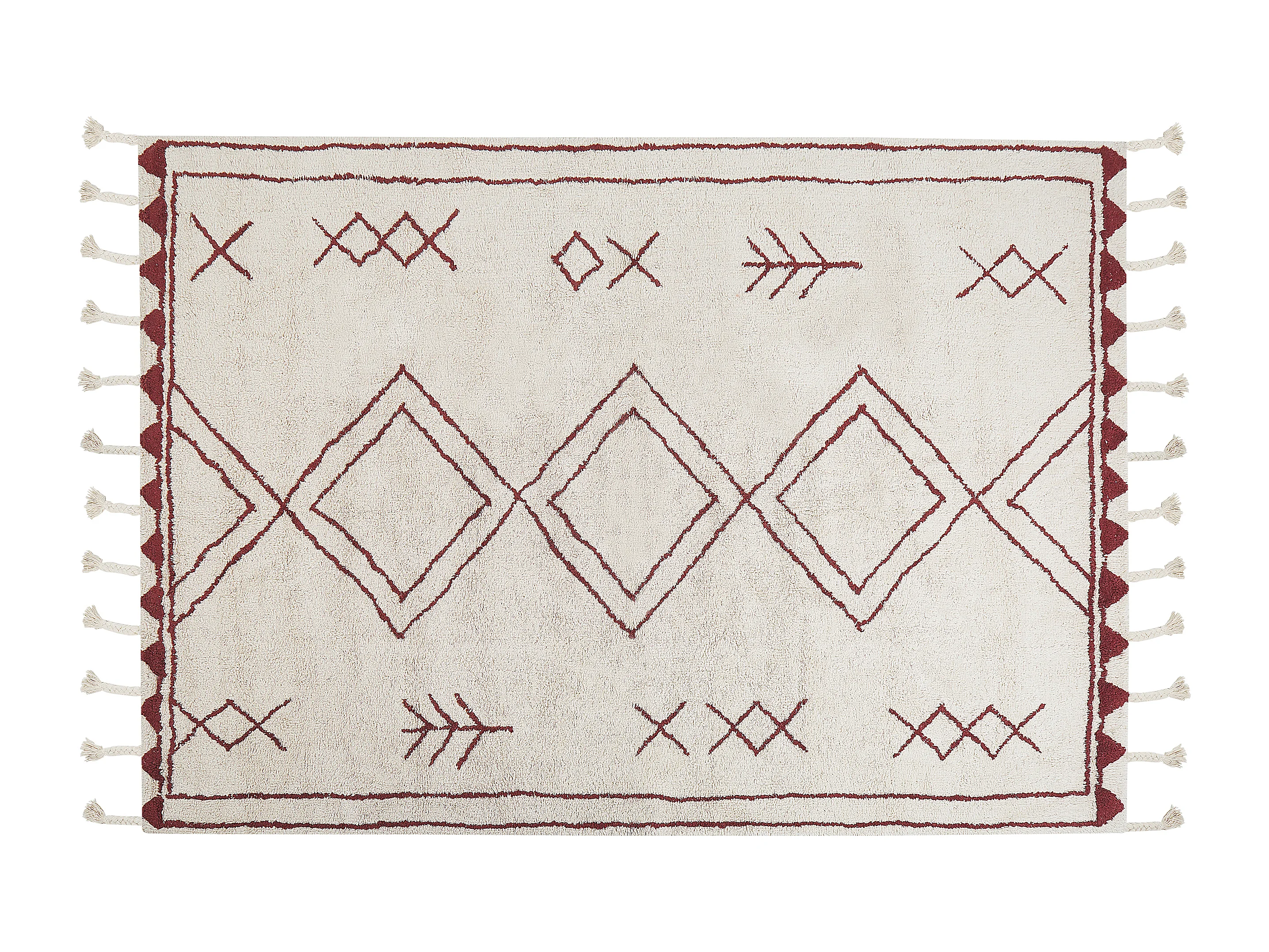 Rechteckiger Teppich mit Quasten Baumwolle Kurzflor 160x230 cm weiß/rot Kenitra