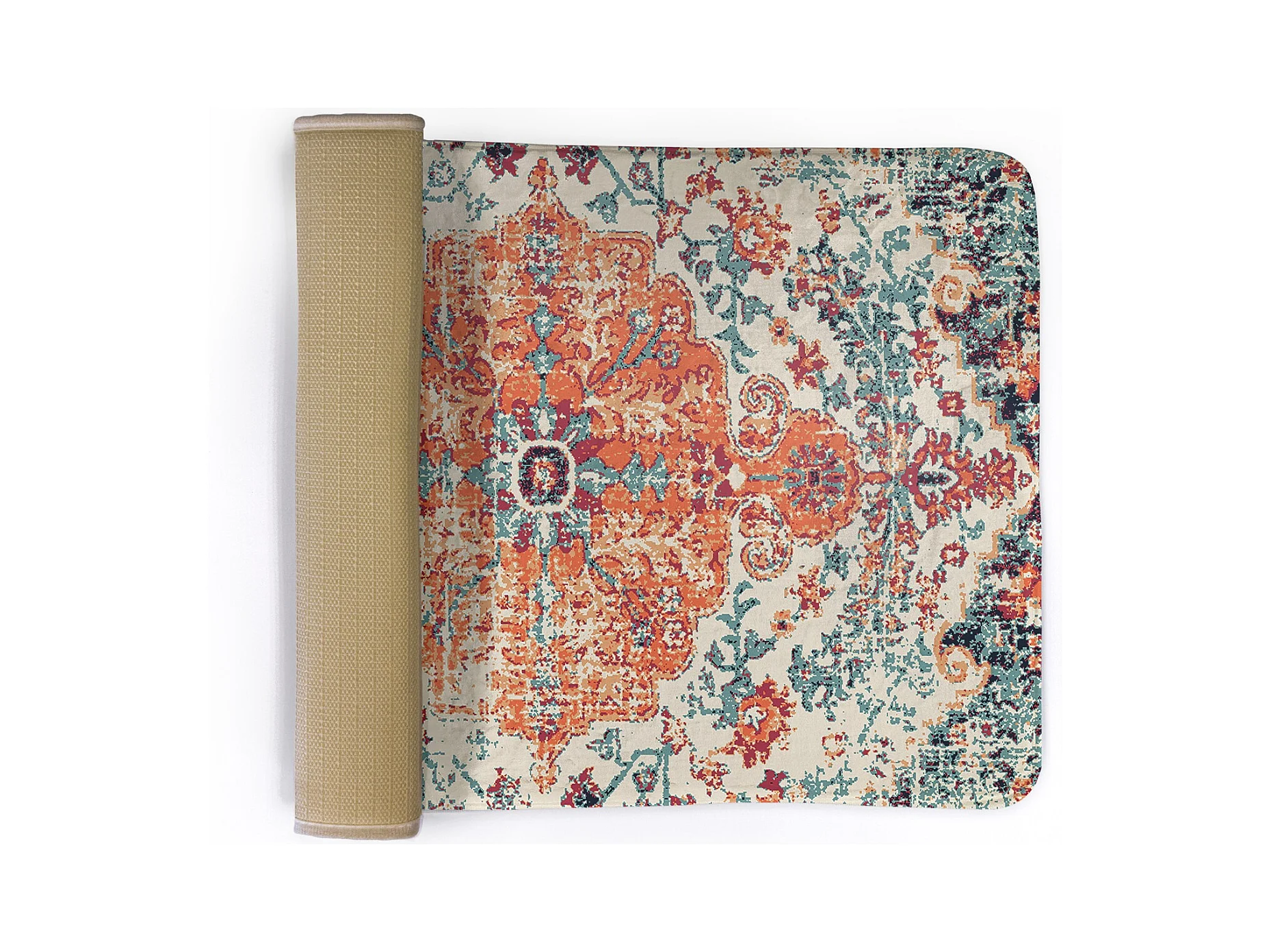 Teppich für das Schlafzimmer, 90x60 cm. Muster auf dem Teppich. Trendiger Teppich für das Schlafzimmer oder Wohnzimmer.