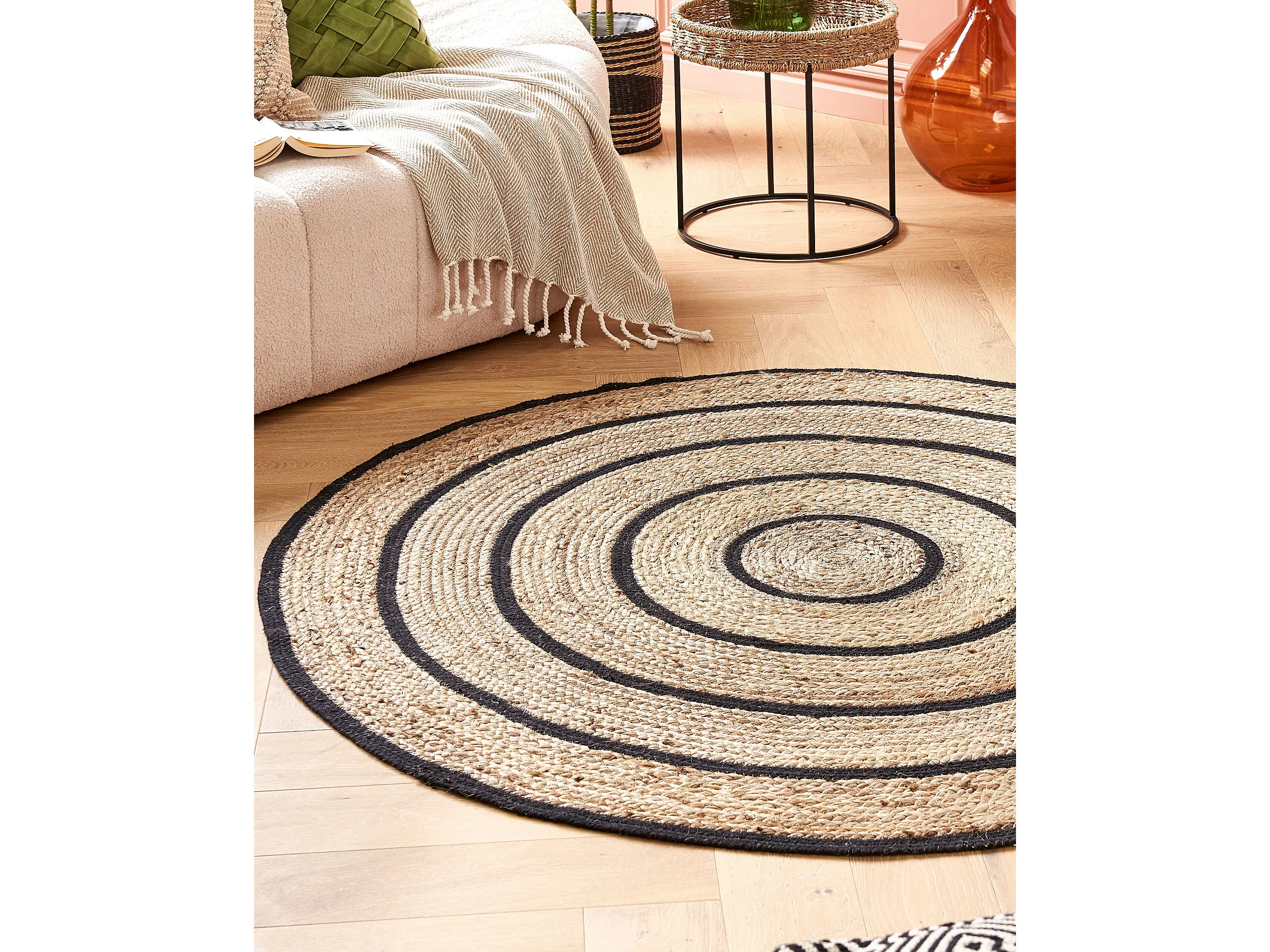 Runder Teppich aus Baumwolle Jute Spirale beige/schwarz ⌀ 140 cm Boho Stil Bukse