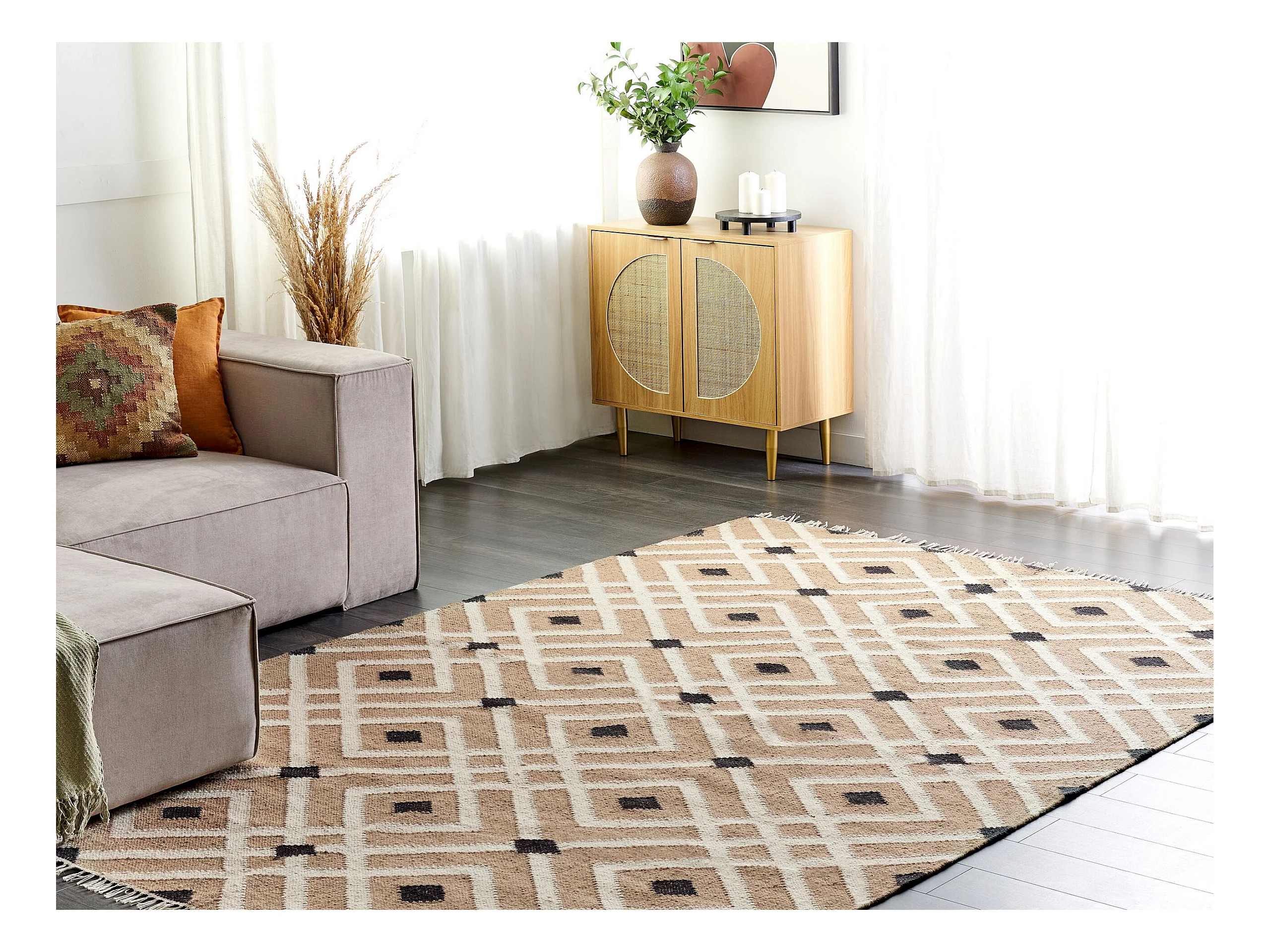 Teppich Jute beige / schwarz rechteckig 200x300 cm geometrisches Muster Esencik